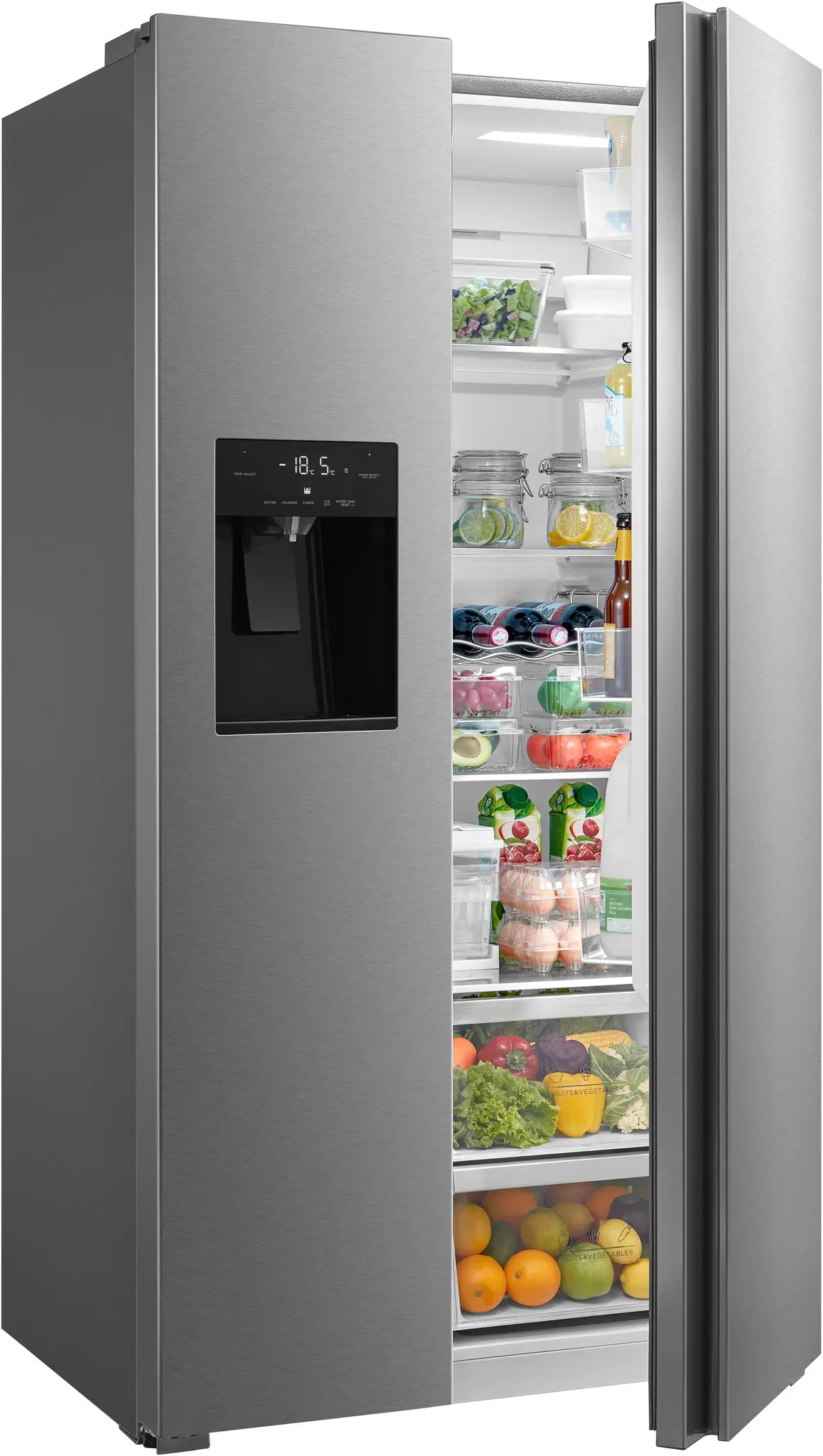 Küchenkleingeräte Wohnen - - Bestseller. Produktdetails: Farbe Front: edelstahl, Farbe Seitenteile: silberfarben, Top-Feature: Top-Features: 4-Sterne-Gefrierfach, Abtauautomatik, Eis-, Crushed-Ice- und Wasserspender, Flaschenregal, Holiday-Funktion, LED-Innenbeleuchtung, TouchControl-Bedienelementen, Türalarm, interner Wassertank, Leistung Verbrauch: Modellbezeichnung: HSBS17590CWEI, Energieeffizienzklasse: C, Skala Energieeffizienzklasse: A bis G, Jährlicher Energieverbrauch: 208, Gefriervermögen in 24 Stunden: 12, Klimaklasse: SN, N, ST, T, Rauminhalte der Kühlfächer: 376 l, Rauminhalte der Tiefkühlfächer: 198 l, Gesamtrauminhalt: 574 l, Luftschallemissionsklasse: C, Luftschallemissionen: 38 dB(A), Ausstattung: Display mit Temperaturanzeige: auf der Tür, Warnsignal: Fehlfunktion, Tür offen, Art Warnsignal: akustisch, Art Bedienung: Touch-Bedienung, Ausstattung Funktionen Kühlteil: Anzahl Ablageflächen: 4 Stk., Anzahl Türablagen: 4, Anzahl Kühlschubladen: 2, Material Ablagen: Glas, Zusatzfunktionen Kühlteil: Schnellkühlfunktion, Urlaubsmodus, Abtauautomatik, Art Innenbeleuchtung: LED-Innenbeleuchtung, Frischezonen: 2 Frischeschubladen, Anzahl Temperaturzonen: 2, Art Temperaturanzeige: digital, Eigenschaften Ablagen: herausnehmbar, Ausstattung Funktionen Gefrierteil: Anzahl Gefrierschubladen: 2, Anzahl offene Gefrierfächer: 4, Zusatzfunktionen Gefrierteil: Schnellgefrierfunktion, Informationen zum Einbau: Einbauart: freistehend, Maße Gewicht: Höhe: 179,3 cm, Breite: 91 cm, ... ![]() ![]() Hanseatic Side-by-Side HSBS17590CWEI, 179,3 cm hoch, 91 cm breit, mit Eis-, Crushed-Ice- und Wasserspender silberfarben