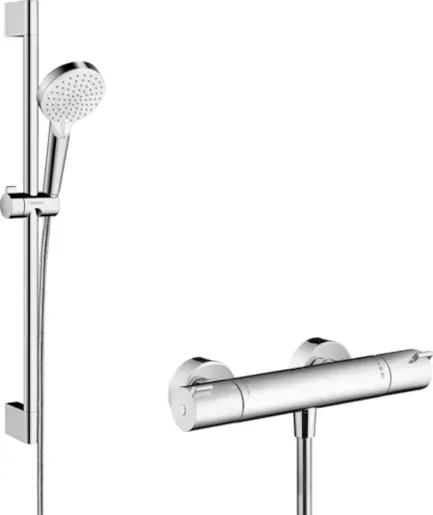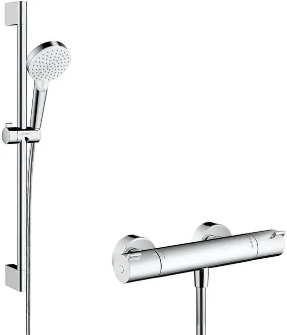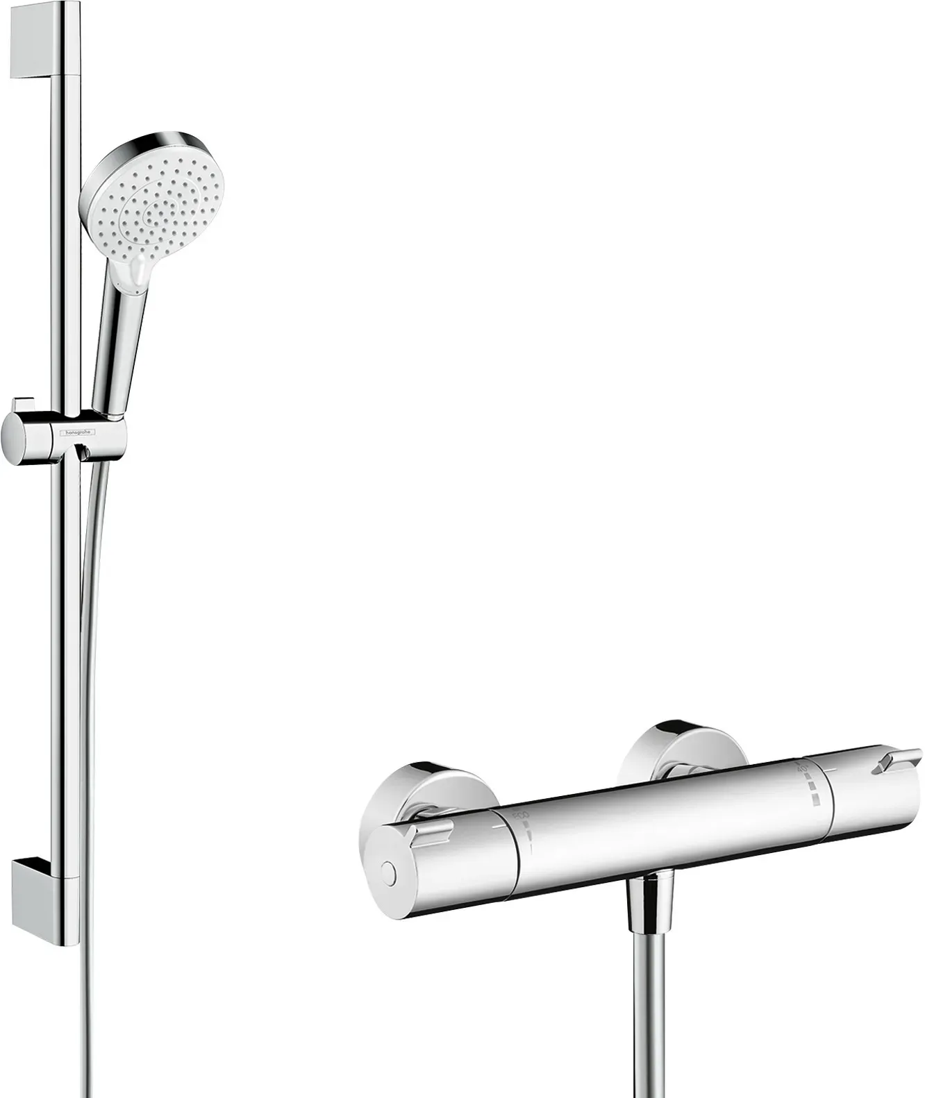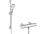 keine Angabe Versand durch Amazonhansgrohe Crometta - Duschset mit Thermostat Ecostat 1001 CL, runder Duschkopf mit Brausestange 65 cm, Duschkopfhalterung und Brauseschlauch 1,60m, Duschbrause mit 2 Strahlarten, Weiß-Chrom, 27812400