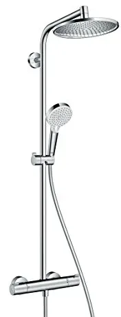Zustand: Gebraucht - Badewannen- & Duschsysteme - Hansgrohe hansgrohe - 27271000 - EAN: 4011097775906 - Die 240 mm große Kopfbrause hüllt den ganzen Körper in einen gleichmäßigen, üppigen Wasserstrom ein. Auch die 100 mm große Handbrause verwöhnt mit XXL Performance Regendusche: Die Kopfbrause erfrischt mit der Strahlart Rain. Die Handbrause ergänzt flexibel mit den Strahlarten Rain und IntenseRain Einfach zu reinigen: Kalk lässt sich durch leichtes Abwischen über die Silikondüsen am Duschkopf entfernen (QuickClean) Modernes Design: mit der harmonischen Formgebung fügt sich die Linie Crometta zeitlos in jedes Bad-Ambiente ein Schnelle Strahlumstellung: direkt am Duschkopf durch Drehen der Strahlscheibe Großartiges Wasservergnügen: die Kopfbrause liefert bis zu 16 l/min, die Handbrause beim Rain-Strahl max. 14 l/min und max. 11,5 l/min bei IntenseRain (je 3 bar) Mehr Komfort: das Thermostat hält die eingestellte Wunschtemperatur und schützt zuverlässig vor zu heißem oder zu kaltem Wasser - 22 Händler im amazon.de Marketplace Dieses Angebot ist mit 248,99 Euro ein solides Standardmodell mit Thermostat. ![]() ![]() hansgrohe Crometta S - Duschsystem mit Thermostat, Regendusche (240 mm) mit Armatur, Handbrause (2 Strahlarten), Schlauch, Brausestange und Kopfbrause (1 Strahlart), Chrom, 27267000