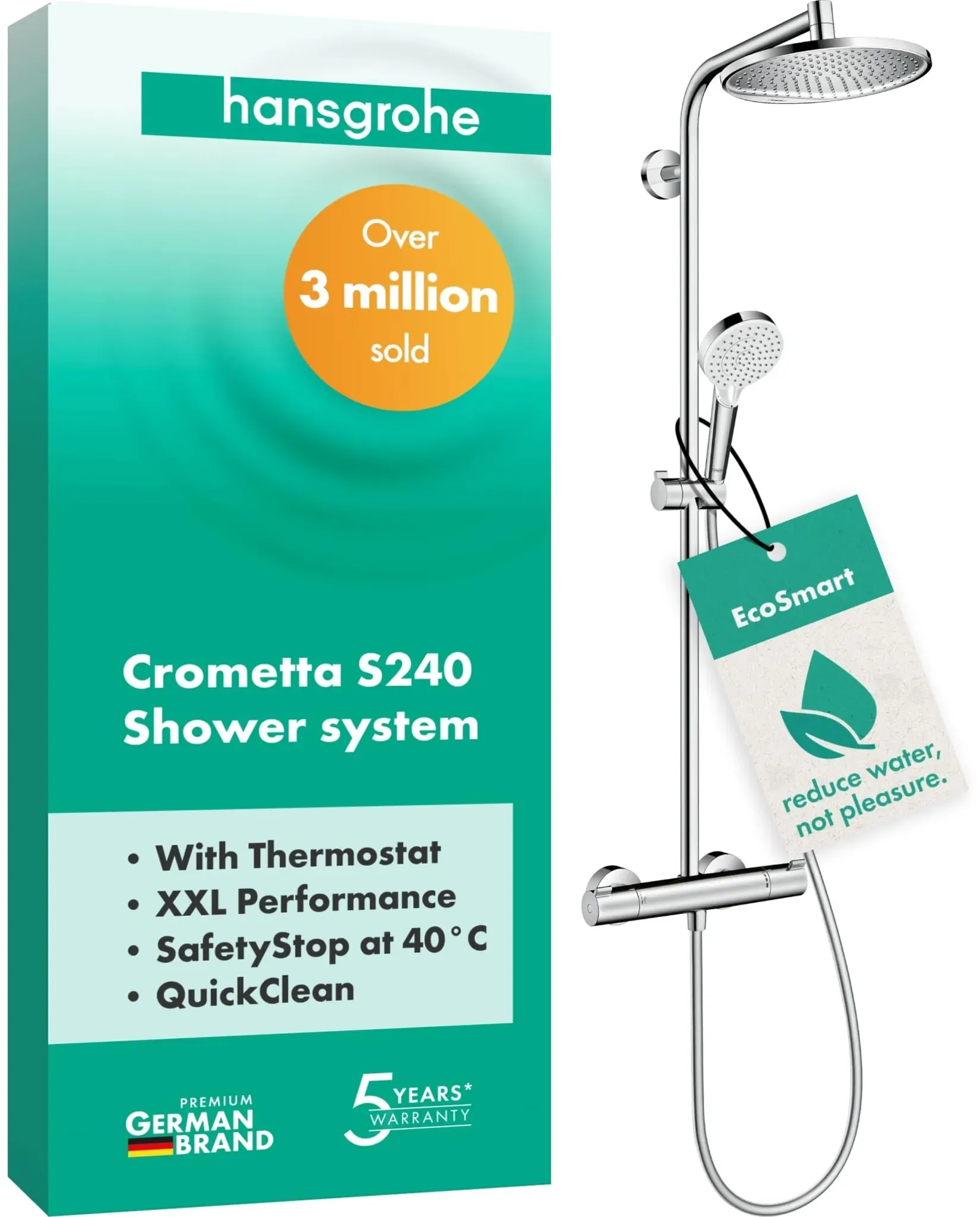 hansgrohe - EAN: 4011097775913 - hansgrohe Reno Crometta S 240 Showerpipe 27270000 chrom, 1jet, EcoSmart, 9 l/min, 240 mm - bei obadis.com - aus Yadore Produktdaten Dieses Angebot ist mit 265,40 Euro ein preiswertes Modell mit Thermostat. ![]() ![]() Hansgrohe Crometta S Showerpipe 240 1jet mit Thermostat chrom 27267000