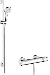 ![]() ![]() hansgrohe Croma Select S - Brausesystem Aufputz, Duschset mit Duschkopf (3 Strahlarten), Brausethermostat Ecostat 1001 CL, Duschschlauch 160 cm und Duschstange 72 cm, Weiß/Chrom