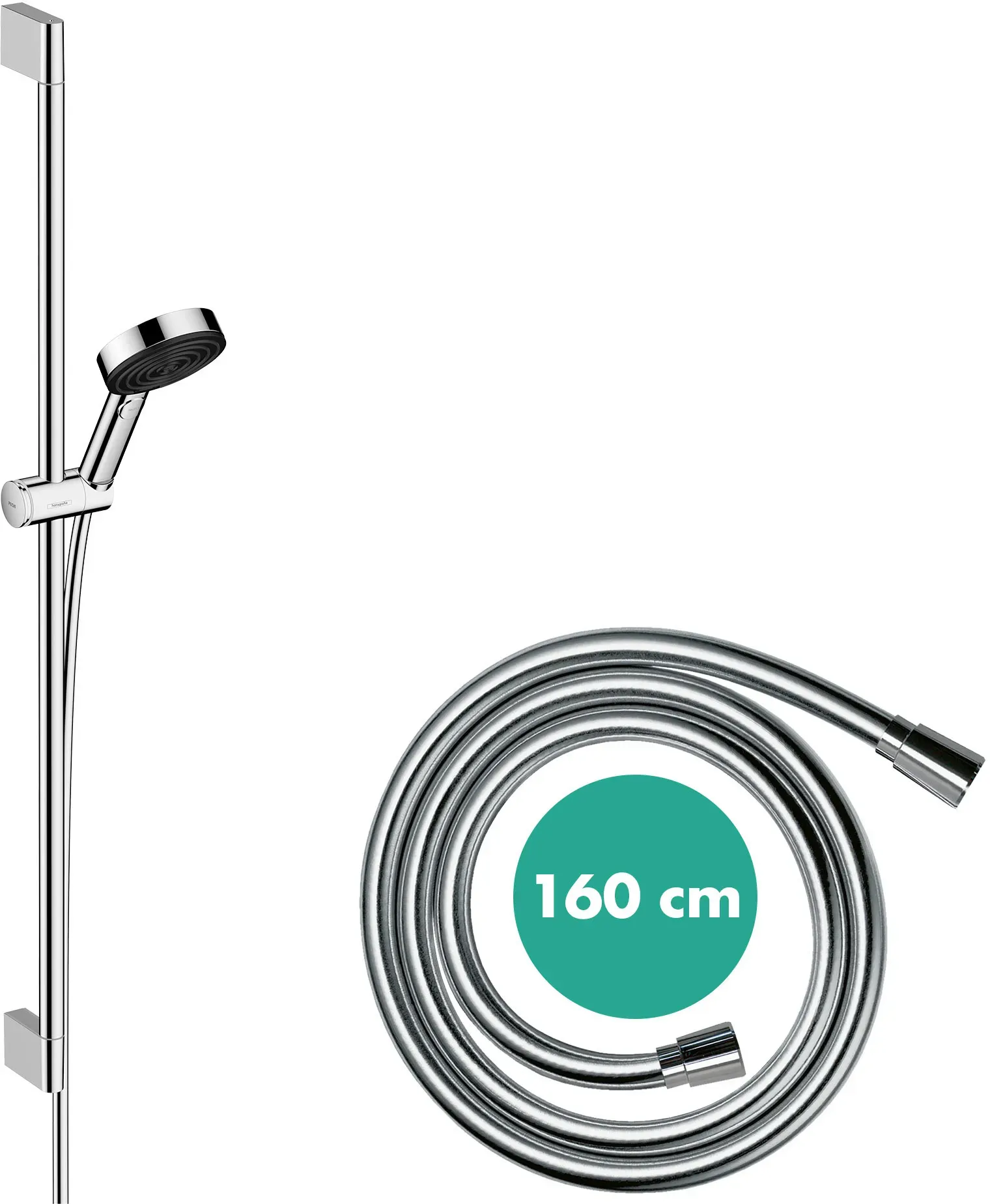 Brauseprogramm Badezimmerausstattung - EAN:4059625348017 - hansgrohe Pulsify Select S Brauseset 24171000 bestehend aus Handbrause Handbrausehalterung Brausestange Brauseschlauch Brausekopfgröße 105 mm Strahlart: Powder Rain IntenseRain Massagestrahl Strahlartenumstellung durch Select-Taste höhenverstellbare Handbrausehalterung mit Push Schieber Brausestangendurchmesser 22 mm Steigrohrlänge 959 mm Profil Steigrohr rund Bohrabstand 915 mm Wandstützen aus Kunststoff Quick Clean - gefunden von Kelkoo Skybad.de Hansgrohe Pulsify Select S Brauseset 24171000 3jet, Relaxation, mit Brausestange 90cm, EcoSmart, chrom