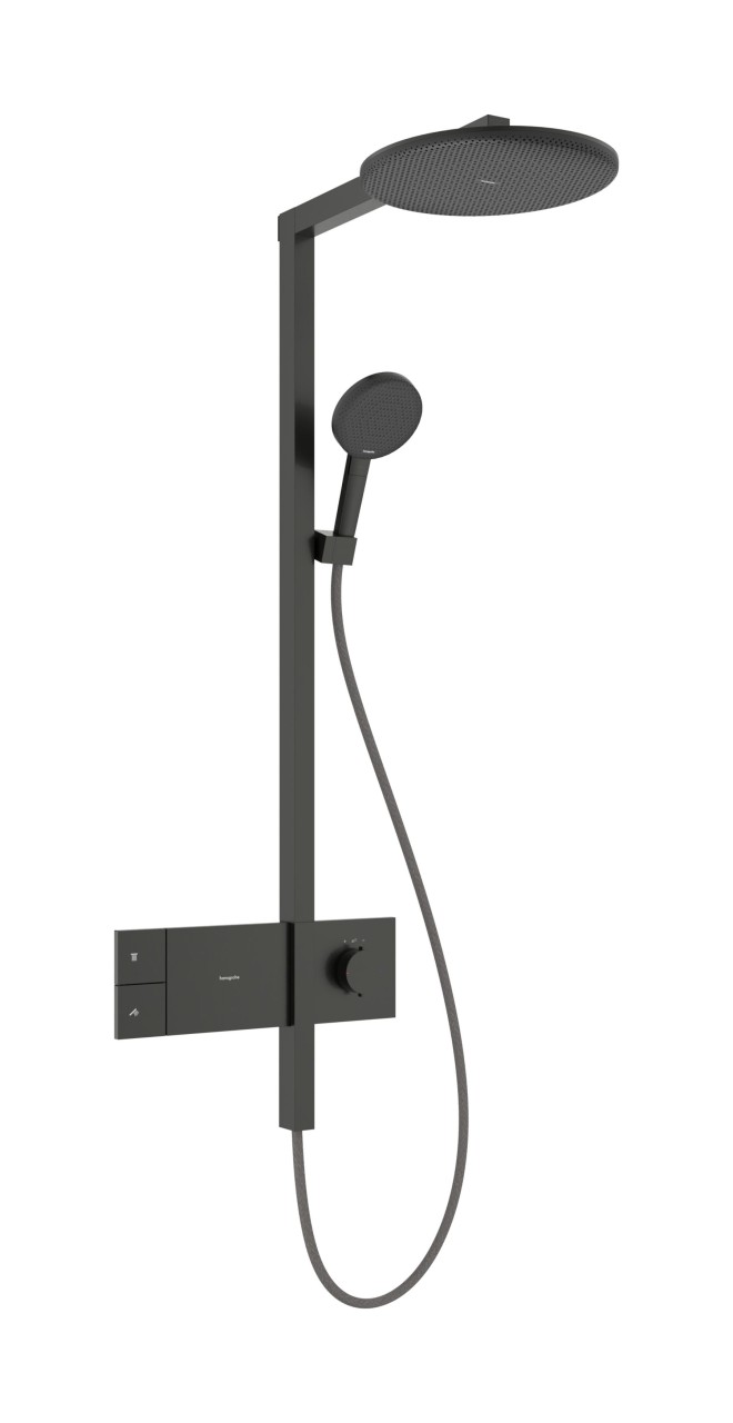 Badarmaturen Ausführung mit Brauseschlauch Badezimmerausstattung - EAN:4059625569153 - Begeisterung - neu komponiert. Raindance Alive Duschset mit Thermostat, Kopf- und HandbrauseAlles aus einer Hand. Mit dem hansgrohe Raindance Alive S Duschset 300 haben Sie gefunden, was Sie suchen. Ein perfekt aufeinander abgestimmtes Gesamtpaket für mehr Geborgenheit, Entspannung und Erfrischung.Ein erster Blick enthüllt das Besondere. Inspiriert von einer Symbiose aus Wasser, Mensch und Raum zelebriert Raindance Alive das Lebenselixier. Und es schenkt Ihnen etwas, das noch kostbarer als Wasser ist: Zeit für sich selbst.Vertrauter Name. Vollkommen neues GefühlBelebende Erfahrung: hansgrohe Raindance Alive bietet extra großes Duschvergnügen - mal voller Wohlbehagen und sanft, mal kraftvoll und mitreißendMeisterliches Design: Ikonisch und zeitlos überdauert es kurzlebige Trends. Entworfen in Zusammenarbeit mit dem renommierten Studio PhoenixWohlfühlatmosphäre: Die moderne Gestaltung des Duschkopfs strahlt Wärme aus und macht das Badezimmer wohnlicherUnbeschwertes Duscherlebnis: Das Unterputzthermostat wird bequem auf Tastendruck gesteuert (Select)Weitere BesonderheitenPerfektes Doppel: Die Kopfbrause verwöhnt mit RainAir, während die Handbrause erstmals die beiden herausragenden hansgrohe Strahlarten RainAir und PowderRain in einer Brause vereint und mit einem wohltuenden Massagestrahl abrundetAuch für kalkhaltiges Wasser geeignet: Die eloxierte Abdeckung lässt sich leicht abnehmen und ... Dieses Showerpipe-System bietet zwei Strahlarten und ein Thermostat für höchsten Komfort und Sicherheit. ![]() Hansgrohe Showerpipe Raindance Alive S 300 2jet mit Thermostat mattschwarz, 24595670 24595670