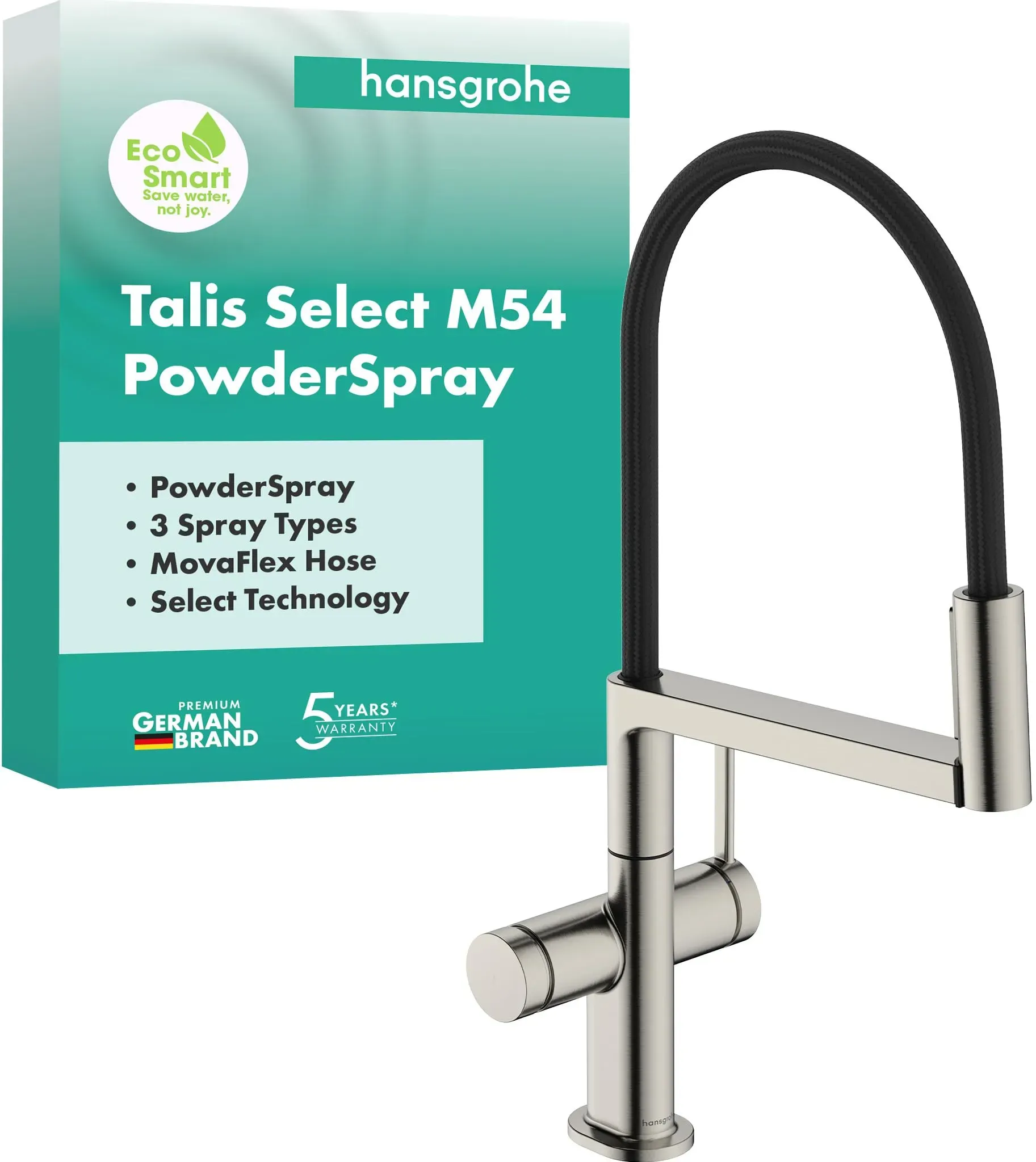 keine Angabe 40-42 Werktage in_stockTalis Select M54 PowderSpray - Spültischarmatur mit flexiblem Arm und Brause, EcoSmart, Edelstahloptik 72861800 - Hansgrohe