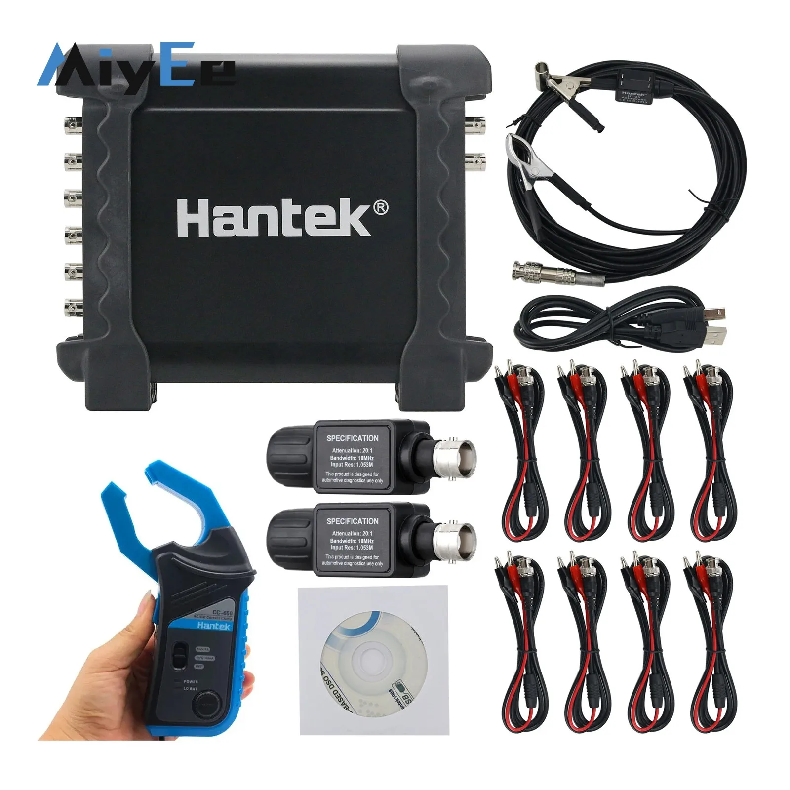 NONE - 1008C 8-Kanal Hantek Oszilloskop + CC-650 / CC-65 AC/DC Stromzange + HT-201 Oszilloskop-Dämpfungsglieder - bei de.aliexpress.com - aus Yadore Produktdaten ![]() NONE Hantek Oszilloskop CC65 CC650 AC/DC Stromzangensonde 20 kHz/400 Hz Bandbreite 1 mV/10 mA 65 A/650 A/800 A mit BNC-Stecker