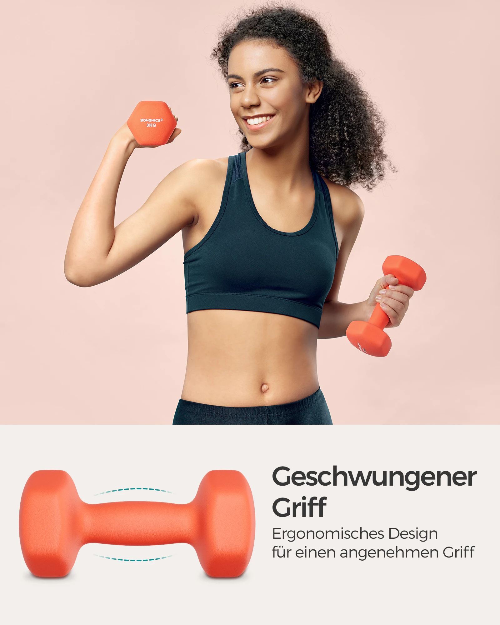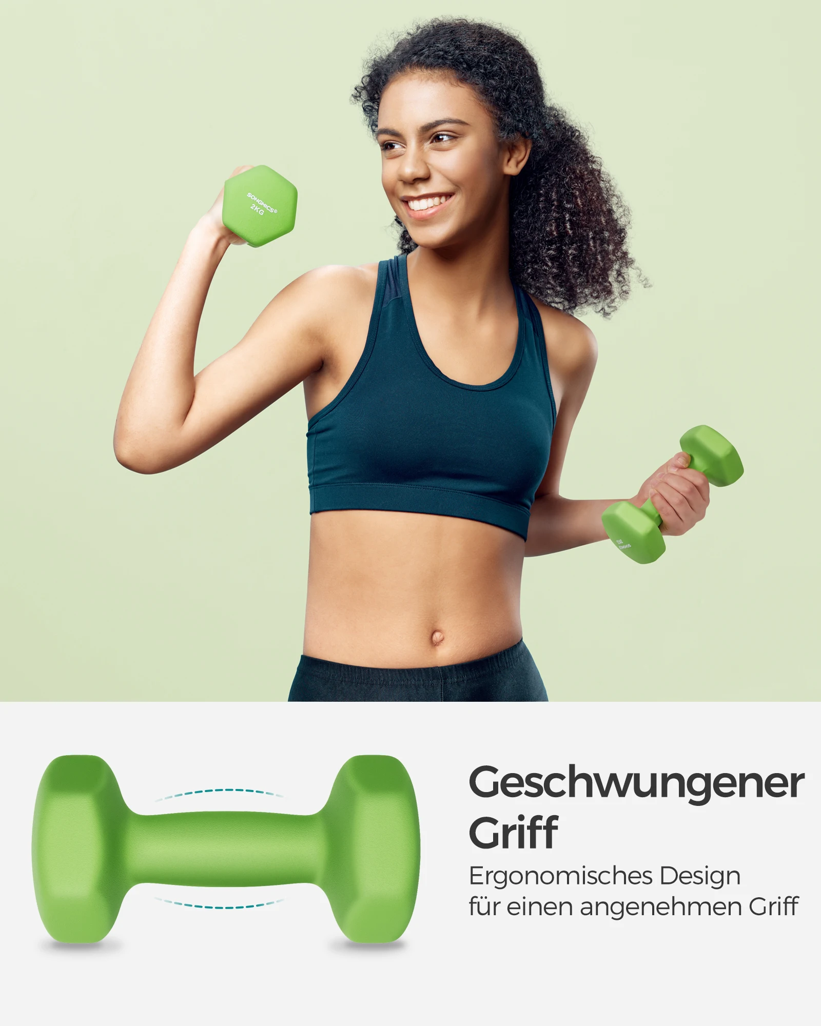 Zustand: Neu - Hanteln - Amazon Basics - IR92004-2X1.0kg - EAN: 0843639102147 EAN: 0192233017419 - 2er-Set Kurzhanteln fürs Krafttraining; Gewicht je Kurzhantel: 1 kg Griffige Neoprenstruktur für sicheren Halt Gewicht aufgedruckt auf jede Endkappe; jedes Gewicht hat einen eigene Farbe Sechseckige Form verhindert Wegrollen Ideal für Fitnesskurse und fürs Training zuhause - bei Amazon.de Das SONGMICS Kurzhantel 2er Set mit Neopren-Beschichtung ist eine preiswerte und komfortable Option für Aerobic und leichtes Krafttraining. ![]() SONGMICS Kurzhantel Hanteln, (2er Set Neopren-Beschichtung, Hantelset, Kurzhanteln, Hexagon), 1KG-2KG-3KG-4KG-5KG
