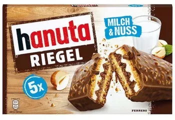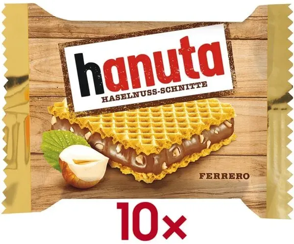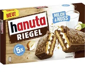 3 Händlerangebote bei billiger.de - Kategorie: Schoko- & Müsliriegel - Ferrero - hanuta Nussriegel hanuta neu interpretiertDer Nussriegel von hanuta hat alles, was hanuta so schmackhaft macht:Knusprige Waffel, Haselnuss- und feine Milchcr me.Die Schokolade macht den UnterschiedDoch mit diesem Leckerbissen setzt hanuta noch einen drauf und überzieht die Waffel mit einer köstlichen Schicht Schokolade, die knackige Nussstückschen enthält.In einer Packung dieses Geschmackswunders befinden sich 5 Riegel.Also bekämpfen Sie Ihren Heißhunger und bestellen Sie die knusprig frischen hanuta Nussriegel noch heute hier in unserem Online-Shop.Für Angaben gem. der Lebensmittelinformationsverordnung klicken Sie bitte hier. - GTIN:8000500331798 Ein direktes Angebot von Amazon für die klassische 10er-Packung Hanuta, oft mit schneller Lieferung. ![]() ![]()