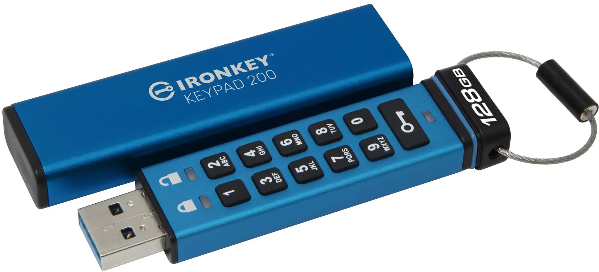 Gewöhnlich versandfertig in 2 bis 3 TagenKingston IronKey Keypad 200 Typ-A Hardware-verschlüsselter USB-Stick FIPS 140-3 Level 3 (ausstehend) mit XTS-AES 256-Bit-Hardware-Verschlüsselung - IKKP200/128GB, blau