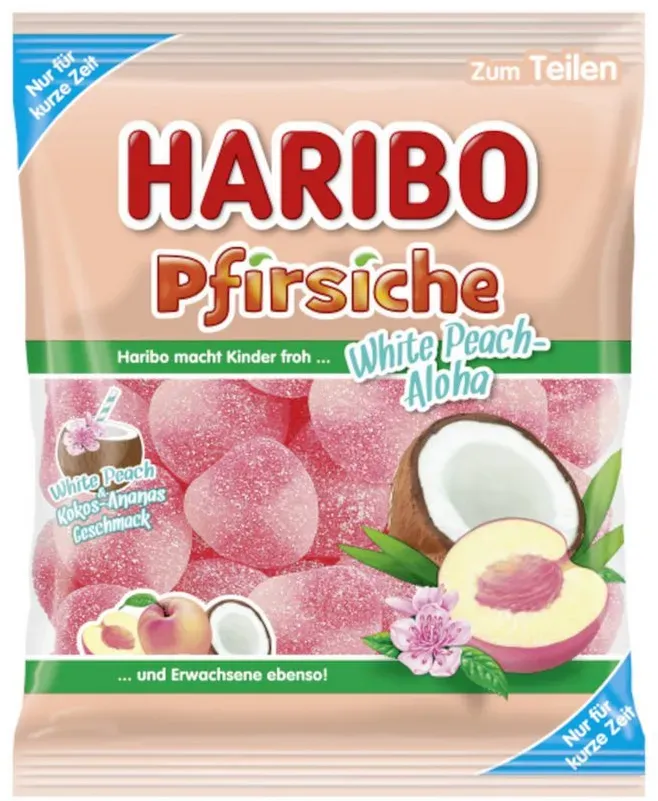 Zustand: Neu - 12,75 € / kg - Fruchtgummis - HARIBO Haribo - - - Lieferumfang: 1 kg Haribo Goldbären Ananas, vor sortiert Das Original, die Haribo Goldbären in der Geschmacksrichtung ''Ananas'' als sortenreine 1 kg Abpackung Für alle Liebhaber der weißen Gummibärchen Zutaten: Glukosesirup; Zucker; Gelatine; Dextrose; Säuerungsmittel: Citronensäure; Fruchtsaft aus Fruchtsaftkonzentrat: Apfel, Ananas; Aroma Überzugsmittel: Bienenwachs weiß und gelb, Carnaubawachs - Verkäufer: PMI Trading im amazon.de Marketplace Ein größeres Multipack für Liebhaber des Pfirsich-Ananas-Kokos-Geschmacks, ideal zum Teilen. ![]() ![]() 5 er Pack Haribo Pfirsiche White Peach-Aloha 5 x 175g Fruchtgummi mit Pfirsich-Ananas-Kokos-Geschmack