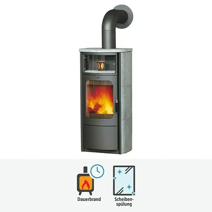 EEK: A+ - Kategorie: Kamine & öfen - Hark - GTIN:4040396018704 - Der Kaminofen Opera B Grande von Hark überzeugt mit zeitlosem Design und Funktionalität. Optimal gliedert er sich in Wohnbereiche ein und füllt diese mit dem warmen, erholsamen Licht des Feuers. Die entstehende Wohlfühlatmosphäre wird durch das Warmhaltefach mit Glasscheibe ergänzt. Hier können Getränke wie Tee oder Kaffee bequem auf Trinktemperatur gehalten werden. Dank der Scheibenspülung, bei der Luft vor dem Glas hinab geleitet wird, wird Scheibenruß effektiv vermieden. Die dadurch rt klare Sicht auf das lodernde Feuer ermöglicht es, in den vollen Genuss des Flammenspieles zu kommen. Durch die Maße des Kaminofens ergibt sich eine bedienerfreundliche Einfüllhöhe und auch das Anheizen und der Abbrand gestalten sich mit der integrierten Automatik leicht und problemlos. Im Feuerraum des Ofens findet Scheitholz bis zu einer Länge von 30 cm Platz. Zudem ist der Ofen für den 24h Dauerbetrieb geeignet und gewährleistet somit langes, effizientes Heizen. Der Kaminofen ist für den Betrieb mit Scheitholz, Holz- und Braunkohlebriketts geeignet und ist in 4 unterschiedlichen Ausführungen erhältlich. - 1589,00 Euro bei BAUHAUS - gefunden von billiger.de Ein Kaminofen mit 5 kW und Titan/Meteor-Schwarz Verkleidung, der eine moderne Ästhetik mit solider Heizleistung verbindet. ![]() ![]()