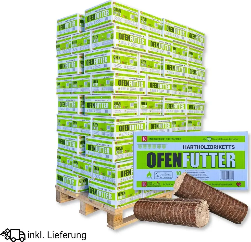 Zustand: Neu - Briketts - Energie Kienbacher - NHHBek22100-960 - EAN: 4260680095307 - 🚚 inkl. Versand & Verpackung | Die Lieferung/Zustellung erfolgt mittels Spedition mit einem mindestens 12to. LKW frei Bordsteinkante (außer Inseln, diese bitte gesondert anfragen) 🔥10x10kg - 96x10kg | 100kg - 960kg Palette | In jedem 10kg Karton sind 8 Briketts enthalten | bitte beachten Sie dass das Karton Design auch immer wieder variieren kann 🔥Nestro Briketts aus reinem Hartholz | FSC zertifiziert | Länge Brikett: ca. 25,5cm | Durchmesser Brikett: ca. 8cm 🔥Hoher Heizwert | natürlich gepresst ohne Bindemittel | Sofort einsetzbar | schnelle Wärmeentwicklung | verwendbar in allen gängigen Kaminöfen, Kachelöfen, Holzöfen, Schwedenöfen€¦ —ï¸ WICHTIG —ï¸ Damit Sie Ihre Ware, nach erfolgreicher Bestellung an Ihrem Wunschtermin geliefert bekommen, benötigen wir Ihre Telefonnummer sowie Mail Adresse. Da die Spedition sonst mit Ihnen keinen Liefertermin vereinbaren kann. Geben Sie bitte deshalb Ihre korrekte Telefonnummer und auch Mail Adresse an und stellen Sie die telefonische Erreichbarkeit sicher, sowie auch das lesen Ihrer Mails. Vielen Dank im Voraus. - Verkäufer: Energie Kienbacher im amazon.de Marketplace ![]() ![]()