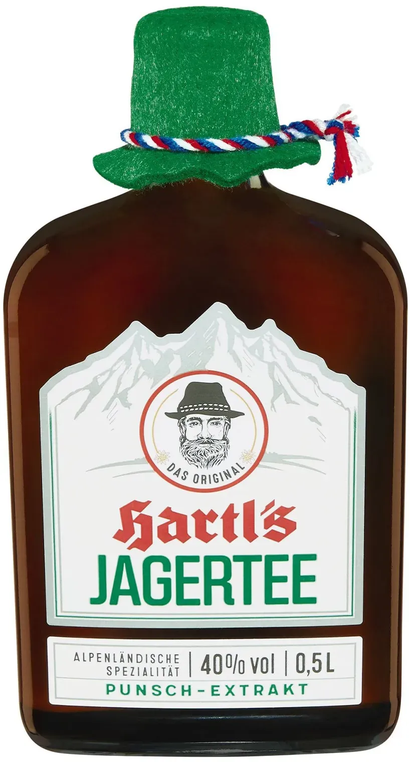 Hartl s - Punschextrakt. traditionelle, alpenländische Spezialität, seit dem 19.Jahrhundert nach Originalrezeptur hergestellt besticht mit seinem auffällig, urigen Design und dem originalen Filzhut Marktführer in Deutschland mild-süßer Geschmack geprägt durch Teeauszüge, Zitrus- und Orangenschalen-Auszüge und Jamaika-Rum - bei edeka24.de - aus Yadore Produktdaten ![]() ![]() Hartl's Jagertee - Punsch Extrakt eBay Landgraf Spirituosen Alte Abfüllung 0,5 Liter 40