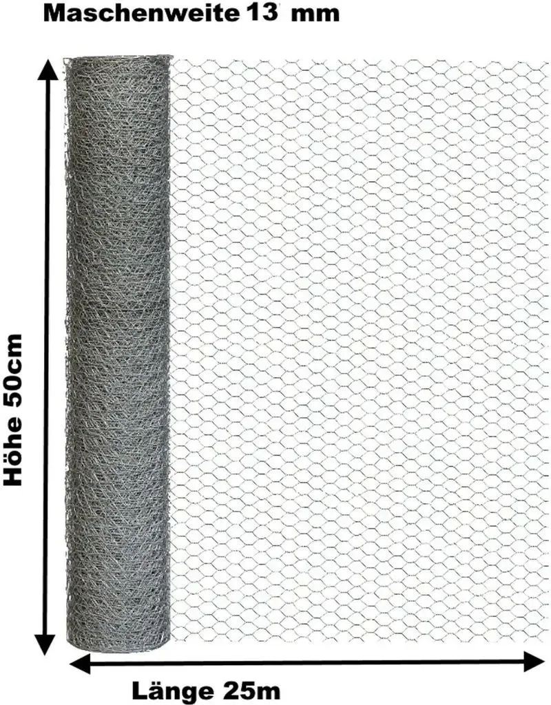 Zustand: Neu - 0,99 € / meter - Maschendraht - EXCOLO - 101753 - EAN: 4251082317531 - Farbe grün, Höhe 50cm, Länge 10m Der Hasendraht ist aus hochwertigem, verzinktem Stahl gefertigt und bietet eine langlebige und wetterfeste Lösung für Ihre Zaunbedürfnisse. Vielseitige Anwendung: Dieser Maschendraht eignet sich perfekt für die Einzäunung von Gärten, Stallbau, Weiden oder Gehegen und hält Haustiere sicher im Inneren. Einfache Installation: Mit seiner flexiblen Struktur lässt sich der Hasendraht leicht an Pfosten oder Rahmen befestigen und anpassen. Maschengröße: Die engmaschige Struktur mit einer Maschenweite von ca. 3 cm verhindert effektiv, dass Hasen oder Nagetiere durchschlüpfen können. Abmessungen: Erhältlich in verschiedenen Rollenlängen und Höhen, um Ihren spezifischen Anforderungen gerecht zu werden. - Verkäufer: GARDEN-PROFI im amazon.de Marketplace Dieses Sechseckgeflecht ist eine kostengünstige und vielseitige Option für Hasen, Meerschweinchen oder Hühner mit einer guten Länge von 25m und einer Höhe von 50cm. ![]() ![]() YouseaHome Maschendrahtzaun Sechseckgeflecht Länge 25 m, Maschendraht-Geflecht, Gartenzaun Draht für Hasen, Meerschweinchen oder Hühner, Maschenweite 25 mm, Höhe 50cm, Wühlmausgitter