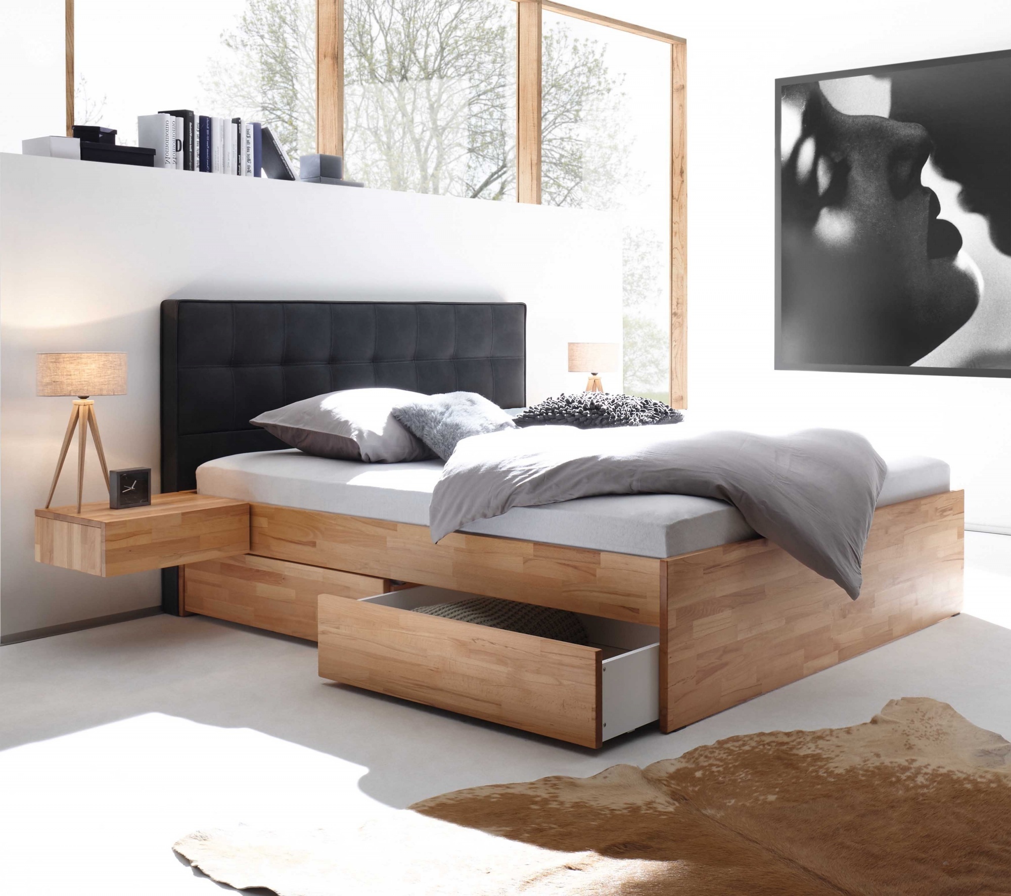 Betten & Kopfteilbezüge Möbel Räume Schlafzimmer Betten Polsterbetten Polsterbetten ohne Bettkasten Schlafzimmermöbel - EAN:7618756371416 - Gegensätze wirken belebend. Zeitlos und frisch wirkt das Bett Marla im weissen Boucle-Stoff und mit anthracit-farbenen Metallfüssen. Die kühl anmutenden Füsse setzen einen spannenden Kontrast zum hellen, weichen Polsterstoff. Schlicht und zurückhaltend bietet diese Kombination Raum zur Entspannung, aber auch die Möglichkeit, andersfarbige Accessoires in den Fokus zu rücken., Produktdetails: Modell: Nora, Markeninformationen: Die Hasena AG ist seit 7 n in der Möbelbranche tätig und hat sich als Bettenspezialist einen Namen gemacht. Das Familienunternehmen in dritter Generation steht heute für moderne, innovative Designs, die in handwerklicher Perfektion stabil und tadellos verarbeitet werden. Beständige Qualität stehen im Fokus der Produktion. Mit dem «swiss bed concept» bietet Hasena ein cleveres Baukastensystem: Bettrahmen, Füsse und Kopfteile können individuell zusammengestellt werden. Eine grosse Auswahl an verschiedenen Materialien, Farben und Formen bietet die Möglichkeit, das Traumbett nach den eigenen Wünschen zu gestalten. Dazu bietet Hasena ein breites Beimöbel-Sortiment an, optisch passend zum Bett. Nebst hochwertigem Design bestechen Hasena-Betten mit hoher Stabilität und langer Lebensdauer. Der einfache Aufbau der Betten lässt sich unzählige Male wiederholen, Kraft und Stabilität bleiben erhalten., Maßangaben: Breite ... Ein hochwertiges Massivholzbett aus Wildeiche natur mit Polsterkopfteil, das Komfort und natürliche Ästhetik vereint. ![]() Massivholzbett HASENA 'Simone', braun (wildeiche natur, geölt, 336 kul smoke), B:166cm H:41cm L:215cm, Wildeiche, Betten, Massivholzbett, Wildeiche, Fußhöhe 25 cm, mit Polsterkopfteil