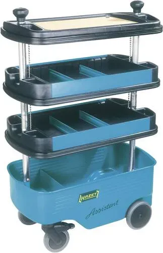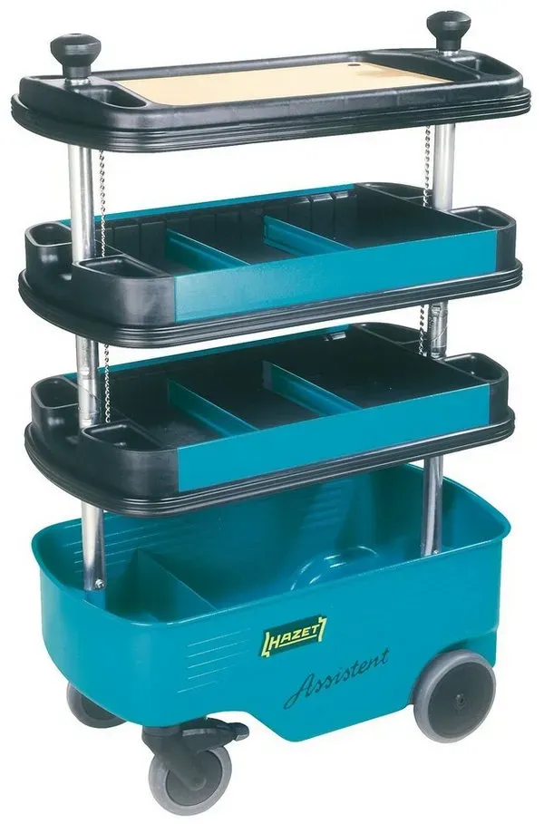 Hazet - EAN: 4000896072286 - Neues Design: in Arbeitsfla chen, Kantenschutz und Schubladenfronten Säulen abschwenkbar auf niedrigste Höhe (647 mm) für platzsparenden Transport Mittelkästen passend für HAZET-Werkzeug-Ordnung, inkl. je 2 Trennblechen Mit zusätzlichem Tableau, verschiebbar, in die Mittelkästen integrierbar, z.B. für Mess-Schieber und Kleinteile Geräumiger Unterkasten aus Stahlblech Große Rollen mit besseren Laufeigenschaften über Unebenheiten Absenkbar, verschließbar, inkl. Vorhängeschloss mit 2 Schlüsseln Umlaufende Gummiprofile Gesamttragkraft (statisch): 300 kg Arbeitsplatte: Holz-Multiplex-Buche, auswechselbar Farbe: HAZET-BLAU Made In Germany Gesamtlänge: 725 mm Höhe: 1102 mm Breite: 398 mm Netto-Gewicht (kg): 27.6 kg Schubladengröße für Ordnungssystem: 3/3 Höhe Arbeitsplatte: 1006 Anzahl Bockrollen: 2 ( 150 mm) Anzahl Lenkrollen: 2 ( 125 mm) - bei toolineo.de - aus Yadore Produktdaten Ebay bietet den Hazet Werkzeugwagen Assistent 166C für 857.52 Euro an, eine gute Gelegenheit, wenn man auf der Suche nach einem zuverlässigen Verkäufer ist. ![]() ![]() Hazet Werkzeugwagen - Assistent 166C