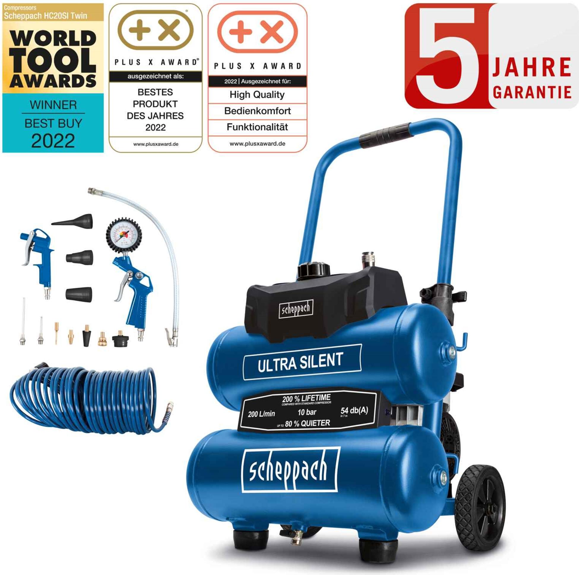 Scheppach - EAN: 4046664134978 - Scheppach Kompressor HC20Si Twin Ultra Silent 750 W 10 bar 20 l 54dB - bei globus-baumarkt.de - aus Yadore Produktdaten ![]() kaufland.d e Scheppach ölfrei Kompressor HC20Si Twin Doppeltank inkl. 14tlg. Set 5906145901-Set