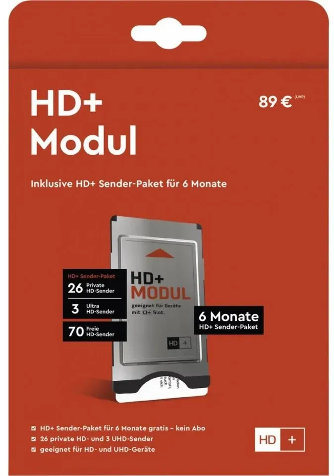 Verfügbarkeit: lagernd, Lieferzeit 1-2 Werktage, 24h Express möglich* - Kategorie: CI-Module - NABO - GTIN:8717756006973 - HD AUSTRIA SAT MODUL ORF bereits freigeschaltet HD AUSTRIA SAT MODUL ORF bereits freigeschaltet Alle ORF- und HD Austria Sender freigeschaltet Größte HD-Vielfalt inkl. UHD Geeignet für alle CI+ zertifizierten TV-Geräte und Receiver Integrierte Micro-SAT-Karte (keine ORF-Karte notwendig) - 69,90 Euro bei e-tec - gefunden von billiger.de Dieses HD+ CI+ Modul ist ideal für Satellitenempfang und bietet 6 Monate HD+ inklusive, was es zu einer beliebten Wahl für den Einstieg in hochauflösendes Fernsehen macht. ![]() ![]() HD PLUS CI+ Modul für 6 Monate (inkl. HD+ Karte, bedingt geeignet für UHD, nur für Satellitenempfang)