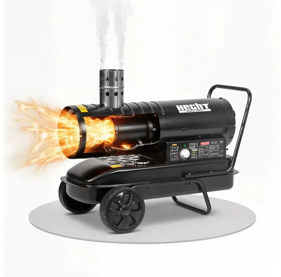 Hecht - EAN: 8595614921442 - 18 kW Heizleistung Für effizientes Beheizen großer RäumeStufenloses Thermostat Temperatur einstellbar von 5 bis 45 C1,8 l/h Kraftstoffverbrauch Effizienter Betrieb mit Diesel oder Heizölüberhitzungsschutz Automatische Abschaltung für sicheren BetriebPraktisches Design Mit fahrbarem Gestell für einfachen TransportHECHT Dieselheizer 3040Der Dieselheizer HECHT 3040 ist die ideale Lösung, um gut belüftete Räume, Garagen, Werkstätten oder Baustellen zuverlässig zu beheizen oder Räume effektiv zu trocknen. Mit seiner starken Heizleistung sorgt er schnell für wohlige Wärme, selbst in größeren Räumen.Leistungsstarke Heizleistung für große RäumeHeizleistung von 18 kW für effizientes BeheizenGeeignet für Räume bis zu 150 m Sorgt schnell für angenehme TemperaturenStufenlos regulierbares ThermostatTemperatur einstellbar von 5 bis 45 CPräzise Steuerung für individuellen HeizkomfortEinfache Bedienung über das integrierte ThermostatEffizienter Betrieb mit Diesel oder HeizölBetrieben mit Diesel oder Heizöl ELVerbrauch von nur 1,8 Litern pro StundeBetriebszeit von bis zu 21 Stunden mit einer Tankfüllung (38 Liter)Sicherheit durch integrierten überhitzungsschutzAutomatische Abschaltung bei überhitzungSicherheitsfunktionen für sorgenfreien EinsatzPraktisches Design mit fahrbarem GestellFahrgestell mit Rollen für einfachen TransportSchneller Einsatz an verschiedenen OrtenStandsicherer Betrieb dank robustem DesignEffiziente Luftverteilung und leistungsstarker ... ![]() ![]() Hecht 3040 Diesel Heizkanone 18 kW) bis 150 m2 Fahrbares Gestell | 1,8 l/h Schwarz