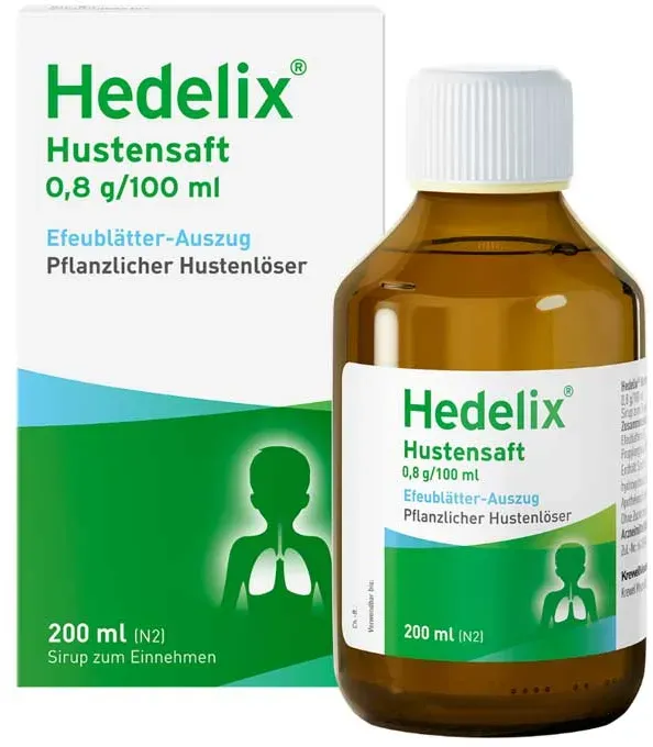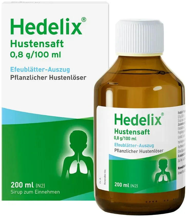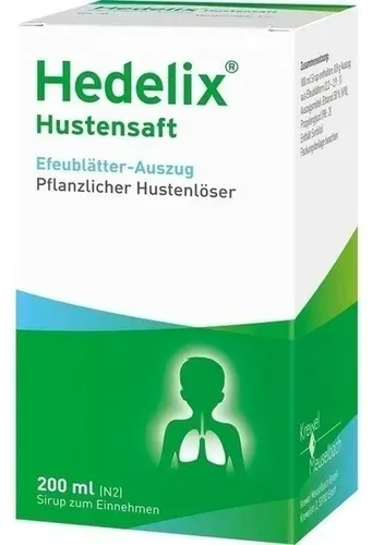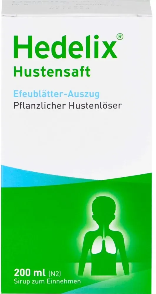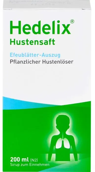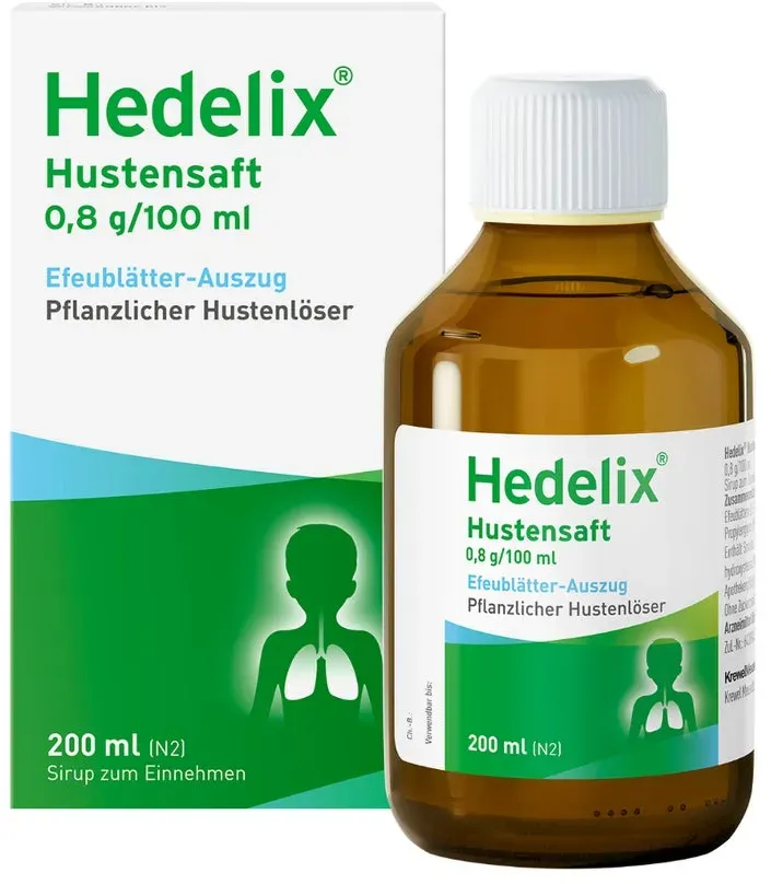 38,65 /l - Kategorie: Arzneimittel - Dr. Theiss Naturwaren - GTIN:4150045956223 - PZN:04595622 - Hedelix Hustensaft Wirkstoff: Efeublätter-Auszug. Anwendungsgebiete: Erkältungskrankheiten der Atemwege; Beschwerden bei chronisch-entzündlichen Bronchialerkrankungen. Hinweis: Enthält Sorbitol: 5 ml entsprechen 0,15 BE. - 7,73 Euro bei medikamente-per-klick.de - gefunden von billiger.de ![]() ![]() Hedelix Hustensaft 200 ml