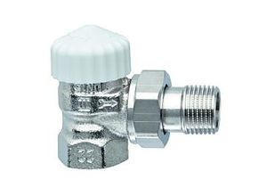Heizungsinstallation Wohnen Haus Garten Heimwerken - - Heimeier V-exact II Thermostat-Ventilunterteil 9104-01.000Thermostat-Ventilunterteile für umgekehrte Flussrichtung mit und ohne Voreinstellung zum Einsatz in Zweirohr-Pumpenheizungsanlagen bei verwechseltem Vor- und Rücklauf (Klopfgeräusche)die Ventilunterteile eignen sich auch zur Montage in den Rücklaufanschluss von hochliegenden Heizkörpern oder Heizkörpern mit großer Bauhöhedadurch ist der Thermostat-Kopf zur Bedienung besser erreichbarAnwendungsbereich Heizungs- und KühlanlagenFunktionen Regelnstufenlose Präzisions-Voreinstellung (V-exact II)Absperrenverhindert Klopfgeräusche bei verwechseltem Vor- und RücklaufDN 10-15PN 10Max. Betriebstemperatur 120 °Cmit Bauschutzkappe oder Stellantrieb 100 °CMin. Betriebstemperatur -10 °C. Ventilgehäuse korrosionsbeständiger RotgussO-Ringe EPDMVentilteller EPDMDruckfeder EdelstahlThermostat-Oberteil MessingPPSdas komplette Thermostat-Oberteil kann mit dem IMI Heimeier-Montagegerät ohne Entleeren der Anlage ausgewechselt werdenSpindel Niro-Stahlspindel mit doppelter O-Ring-Abdichtungder äußere O-Ring ist unter Druck auswechselbarOberflächenbehandlung Ventilgehäuse und Anschlussverschraubung vernickeltKennzeichnung THEDurchflussrichtungspfeilDN und II-Kennzeichnungohne Voreinstellung Bauschutzkappe schwarzStopfbuchse schwarzmit Voreinstellung Bauschutzkappe weißdas Gehäuse mit Innengewinde ist ausgelegt für den Anschluss an Gewinderohroder in Verbindung mit Klemmverschraubungen ... ![]() Heimeier V-exact II Thermostat-Ventilunterteil 9103-01.000 Rp 3/8xR 3/8, Eck, Rotguss vernickelt, stufenlose Voreinstellung
