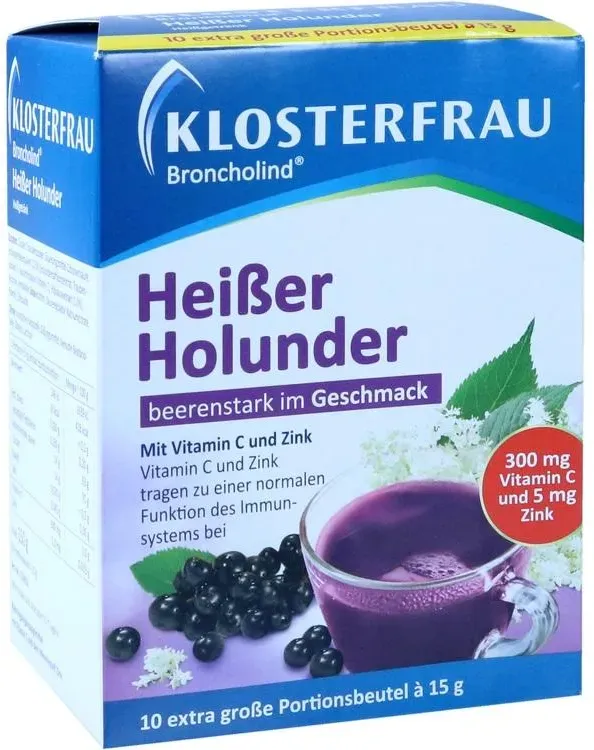 1.75 / 100 g - Kategorie: Arzneimittel - Klosterfrau - GTIN:4008617133919 - PZN:11666021 - KLOSTERFRAU Broncholind heißer Holunder Granulat 10X15 g - 2,63 Euro bei Preisapo - gefunden von billiger.de ![]() ![]() Doppelherz Aktiv Heißer Holunder mit Vitamin C+Zink Granulat 10 St.