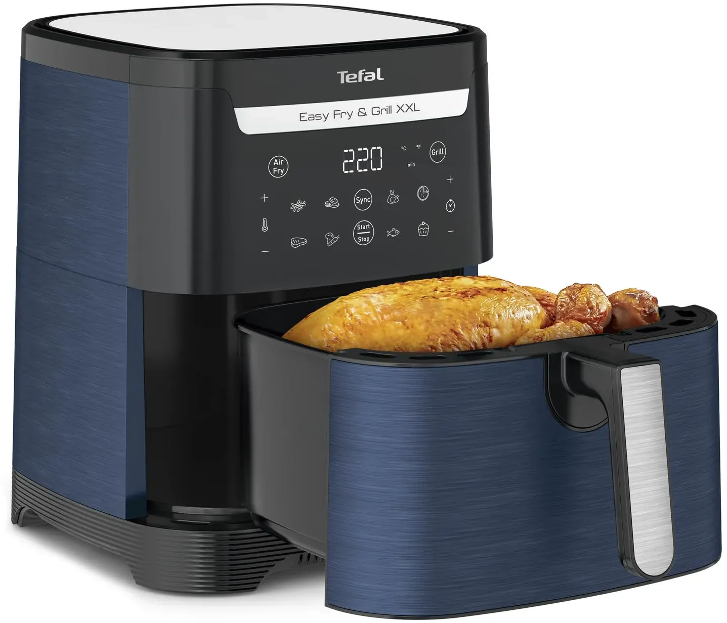 keine Angabe Gewöhnlich versandfertig in 4 bis 5 TagenTefal Easy Fry & Grill XXL Heißluftfritteuse, 6,5 L Fassungsvermögen, 2-in-1 Technologie Heissluftfritteuse & Grill, zeitsparend, 8 automatische Garprogramme, Grill-Technologie, Blau, EY8014