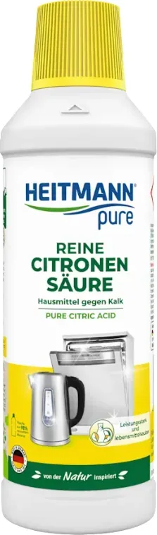 Auf Lager Versand durch AmazonHEITMANN pure Reine Citronensäure | Flüssiger Bio-Entkalker für Küche & Bad | Effektiv gegen Kalkablagerungen | 100% natürliche Inhaltsstoffe | Lebensmittelsauber | 500 ml