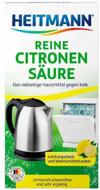 Zustand: Neu - 6,50 € / l - Entkalker Entkalkung & Reinigung für Kaffee- & Espressomaschinen - HEITMANN pure Brauns-Heitmann GmbH & Co. KG - 1008288 - EAN: 4062196082884 - EFFEKTIVE KALKENTFERNUNG: Mit der leistungsstarken HEITMANN pure Reine Citronensäure entfernst du Kalkablagerungen schnell und gründlich von Oberflächen, Armaturen und wasserführenden Geräten LEBENSMITTELSAUBER: HEITMANN pure Reine Citronensäure besteht zu 100% aus Wasser und Citronensäure, ist lebensmittelsauber und eignet sich ideal zum Entkalken von Wasserkochern, Waschmaschinen und anderen Haushaltsgeräten VORGELÖST UND GEBRAUCHSFERTIG: Dank ihrer flüssigen Form ist die Citronensäure sofort einsatzbereit und ermöglicht eine einfache Anwendung ohne zusätzliches Anmischen NATÜRLICHE & RESSOURCENSCHONENDE INHALTSSTOFFE: Hergestellt aus natürlichen Ressourcen, ist diese Citronensäure ressourcenschonend und sicher im Gebrauch VIELSEITIG EINSETZBAR: Ob in der Küche oder im Bad, die HEITMANN pure Reine Citronensäure eignet sich perfekt zur Reinigung verschiedenster Kleingeräte in deinem Zuhause - bei Amazon.de ![]() ![]() Heitmann Zitronensäure - reine Soda eBay Entkalker Grillreiniger Gallseife Fleckensalz