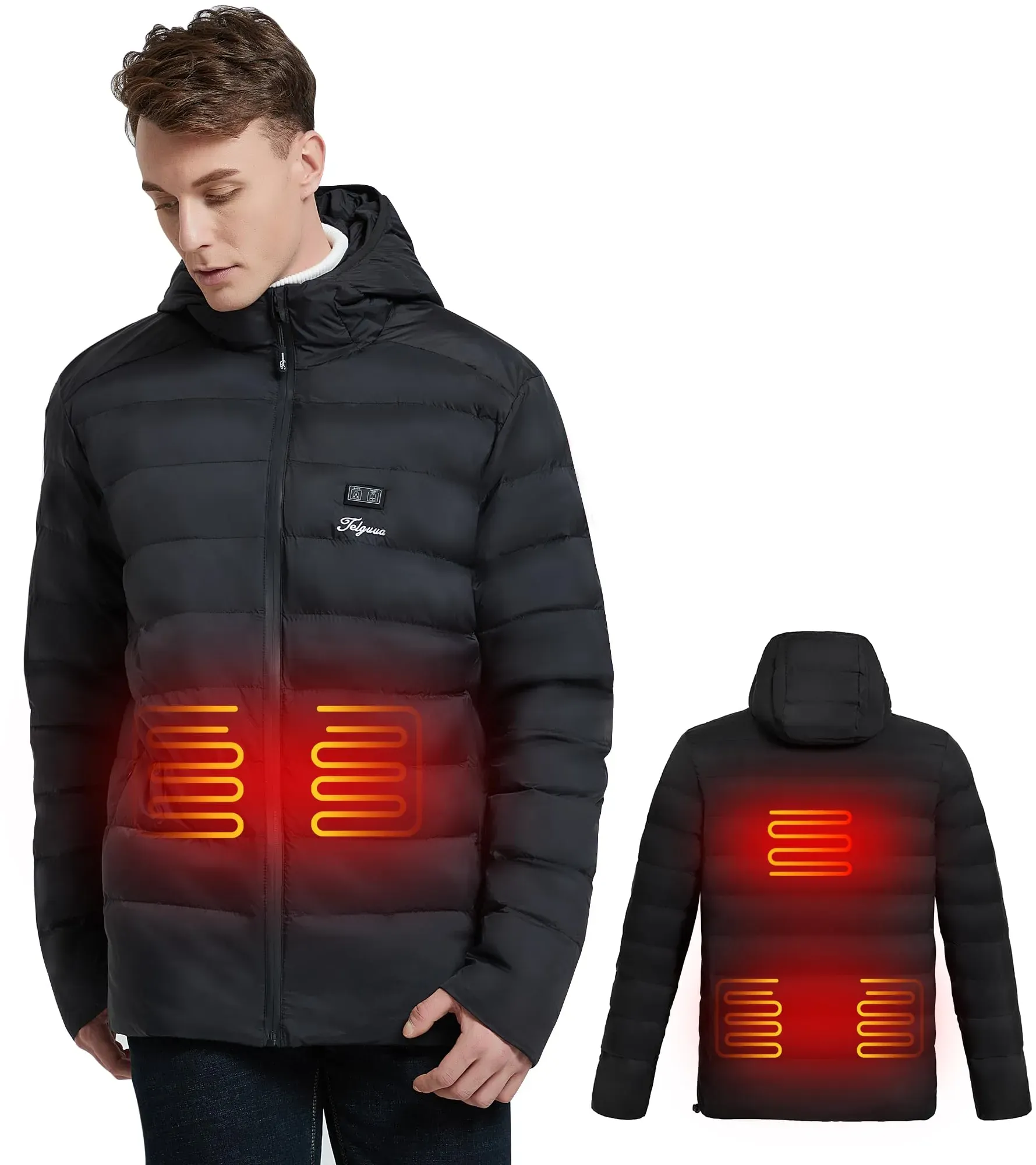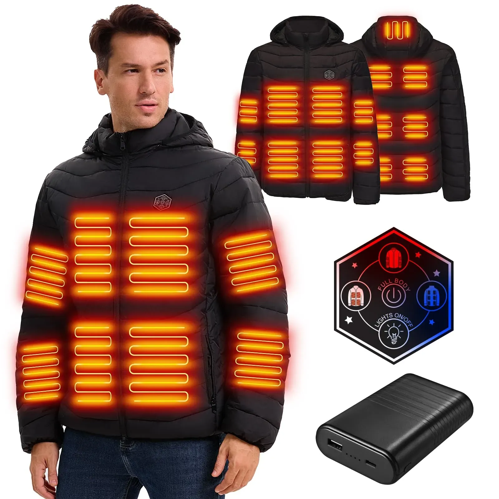 Auf Lager Versand durch AmazonHecusma Beheizbare Jacke Herren mit 18400mAh 12V Powerbank, Heizjacke Herren Warm Gefüttert, Herrens Beheizte Jacke mit Abnehmbarer Kapuze Winddicht Wasserdicht für Ski Freien Winter-XL