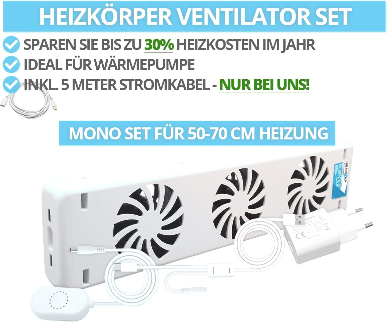 Zustand: Neu - Heizkörperregler & Zubehör - Heatfan - 3 56202 - EAN: 8721008756202 - Universell & einfache Montage: Der Heizkörper Ventilator lässt sich dank klickbarer Eckstücke auf alle Heizkörper und Wand oder Bodenkonvektor montieren. Installation in wenigen Minuten, ohne Werkzeug Energie sparen & Kosten senken: Mit bis zu 30 % weniger Gasverbrauch und einer möglichen jährlichen Ersparnis von Œ€ 396 € heizt der Heatfan effizienter. Die Wärmeverteilung verbessert sich deutlich. Komplettset: 2x Heatfan 3, 1x Touch Sensor, 1x Netzstecker, 1x Handbuch Mit weniger als 20 dB ist der Heatfan leiser als eine tickende Uhr. Ideal für Büroräume oder Wohn-, Schlaf- und Kinderzimmer. Modernster Technologie: Der Sensor schaltet die Ventilatoren automatisch ein, sobald der Heizkörper eine Temperatur von 25,3 °C erreicht. Sie können leicht erkennen, wann die Ventilatoren aktiv sind: Dies wird durch die rote LED-Leuchte am Sensor angezeigt. Langlebig & stark: Mit 2200 RPM, über 70.000 h Lebensdauer und 3 Ventilatoren erzeugt pro Heatfan 57m3/h Luftstrom. Der 32cm kleine Heizungsventilator verteilt Wärme schnell & gleichmäßig im Raum. - Verkäufer: Heatfan im amazon.de Marketplace Das SpeedComfort Trio-Set mit Control Sensor ist eine Premium-Option für größere Heizkörper oder mehrere Einheiten, die eine präzise Steuerung und hohe Energieeinsparungen bietet. ![]() ![]() SpeedComfort Heizkörper Ventilator mit Control Sensor - Trio-Set (3x) - Bis zu 22% Energieeinsparung - Heizungsventilator Wärmepumpen-geeignet - Mehrere Geschwindigkeiten - Flüsterleise