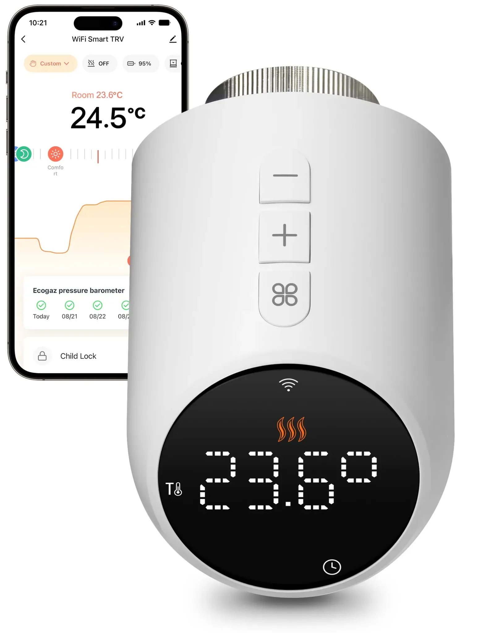 Kategorie: Zubehör für Klima & Heizen - BEOK CONTROLS - Wifi Funktion App-Steuerung: Steuern Sie das Ventil jederzeit und überall aus der Ferne über die Tuya- oder Smart Life-App, 2.4Ghz-Netzwerk erforderlich. Sie können einen Heizplan erstellen, intelligente Szenen erstellen, Hauszonen steuern, historische Daten abrufen, das Gerät mit Ihrer Familie teilen und so weiter. Sprachsteuerung: Arbeiten Sie mit Alexa/Google Assistant zusammen, um Geräte ein-/auszuschalten, die Temperatur anzupassen und mit einfachen Sprachbefehlen zu automatisieren. Tägliche Programmierung Passen Sie Ihren Heizplan an Ihren Arbeits- und Lebensplan an, stellen Sie bis zu 6 Perioden mit unterschiedlichen Temperaturen pro Tag ein. Mehr Modusauswahlen, um Ihre verschiedenen Bedürfnisse zu erfüllen: automatischer Modus, manueller Modus, Urlaubsmodus, Komfortmodus, Energiesparmodus, Ausbruchsmodus, usw. KOMPATIBEL MIT DEN MEISTEN VENTILEN Heizkörper thermostat kann direkt auf Heizkörperventile bis zu einer Größe von M30 x 1,5 mm oder auf die meisten Heizkörperventile mit Hilfe eines Adapters (RA/RAV/RAVL/CAL/GIA/M28-Adapter werden mitgeliefert) montiert werden. Bidirektionale Bildschirmanzeige für einfaches Ablesen: der Bildschirm ist umkehrbar, sodass Sie das Ventil horizontal oder vertikal montieren können. Erkennung Offener Fenster Wenn beim Heizen innerhalb von 5 Minuten ein Temperaturabfall von mehr als 1,5 festgestellt wird, wird die Funktion zur Erkennung offener Fenster aktiviert und das Gerät ... Das Sygonix Raumthermostat mit WLAN und Sensor bietet eine präzise Temperaturregelung und ist eine solide Einzeloption. ![]() ![]()
