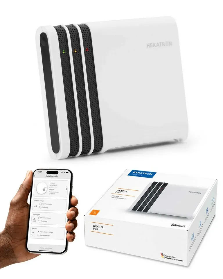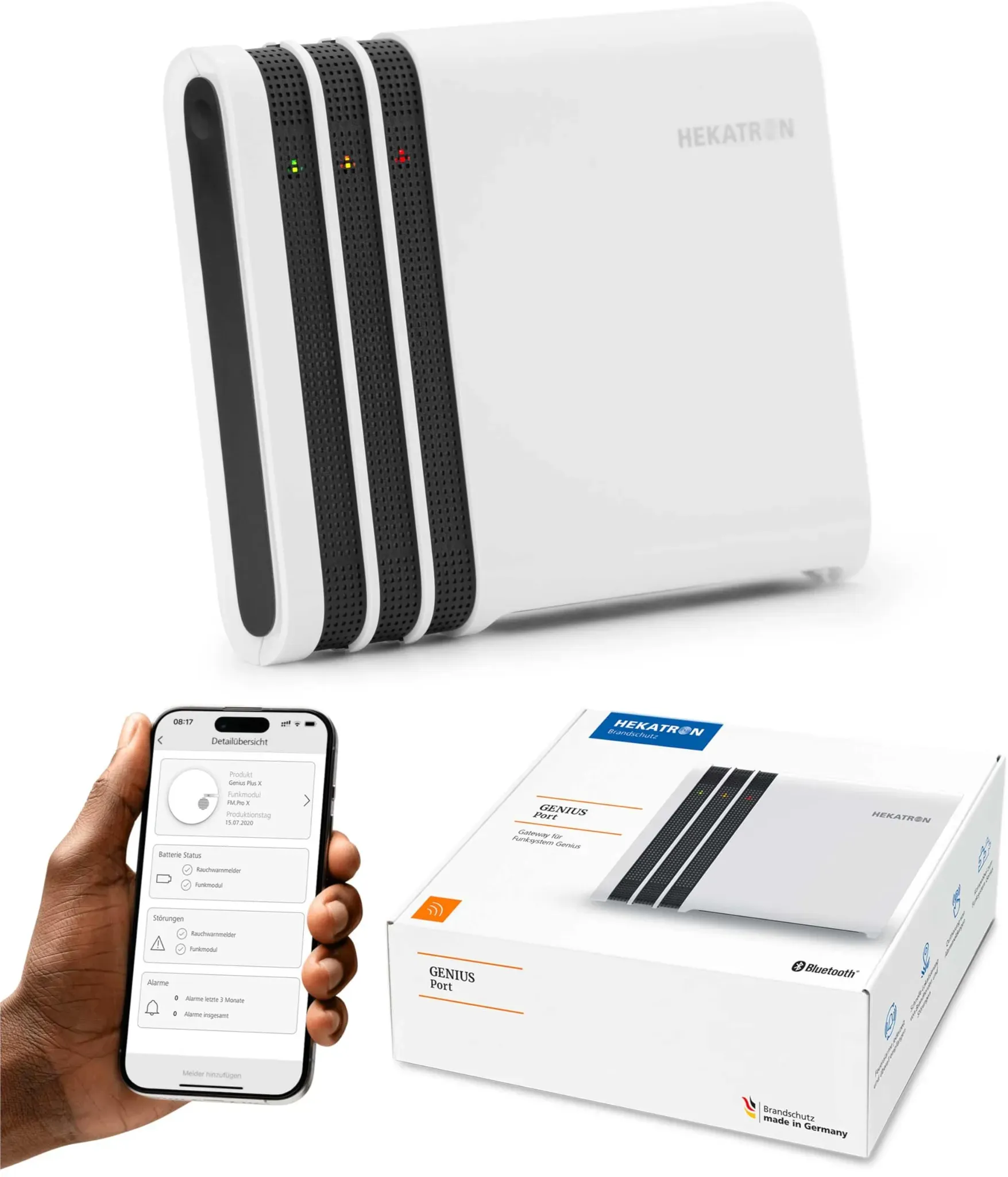 Kategorie: Rauchmelder - Hekatron - GTIN:4260432551624 - Produktdetails Ausstattung , mehrfarbige LED's, Funkrauchmelder, Art Bedienung , Drucktasten, Einsatzbereich , Innenbereich, Technische Daten Signalübertragung , Smartsonic, Funk, Kompatible Smart-Home-Systeme , In Verbindung mit dem passenden Funkmodul und dem Genius Port 'digitalSTROM', Kompatible Apps , Genius Pro und Genius Home App, WEEE-Reg.-Nr. DE , 89412939, Stromversorgung Art Stromversorgung , Batterie, Maße & Gewicht Tiefe , 1 cm, Farbe & Material Farbe , weiss, Material Gehäuse , Polycarbonat, Lieferung & Montage Lieferumfang , Hekatron Genius Plus X Edition Rauchwarnmelder, Funkmodul Basis X, Montageset für Ein-oder Zweilochmontage, Schnellstartanleitung in deutsch, Art Montage , Deckenmontage, - 74,99 Euro bei OTTO - gefunden von billiger.de Der Genius Port ist eine zentrale Steuereinheit für das Funksystem, die eine Anbindung an die Control App ermöglicht und somit erweiterte Funktionen bietet. ![]() ![]() Hekatron Genius Port für Funksystem +Control App 31-6000001-01-01