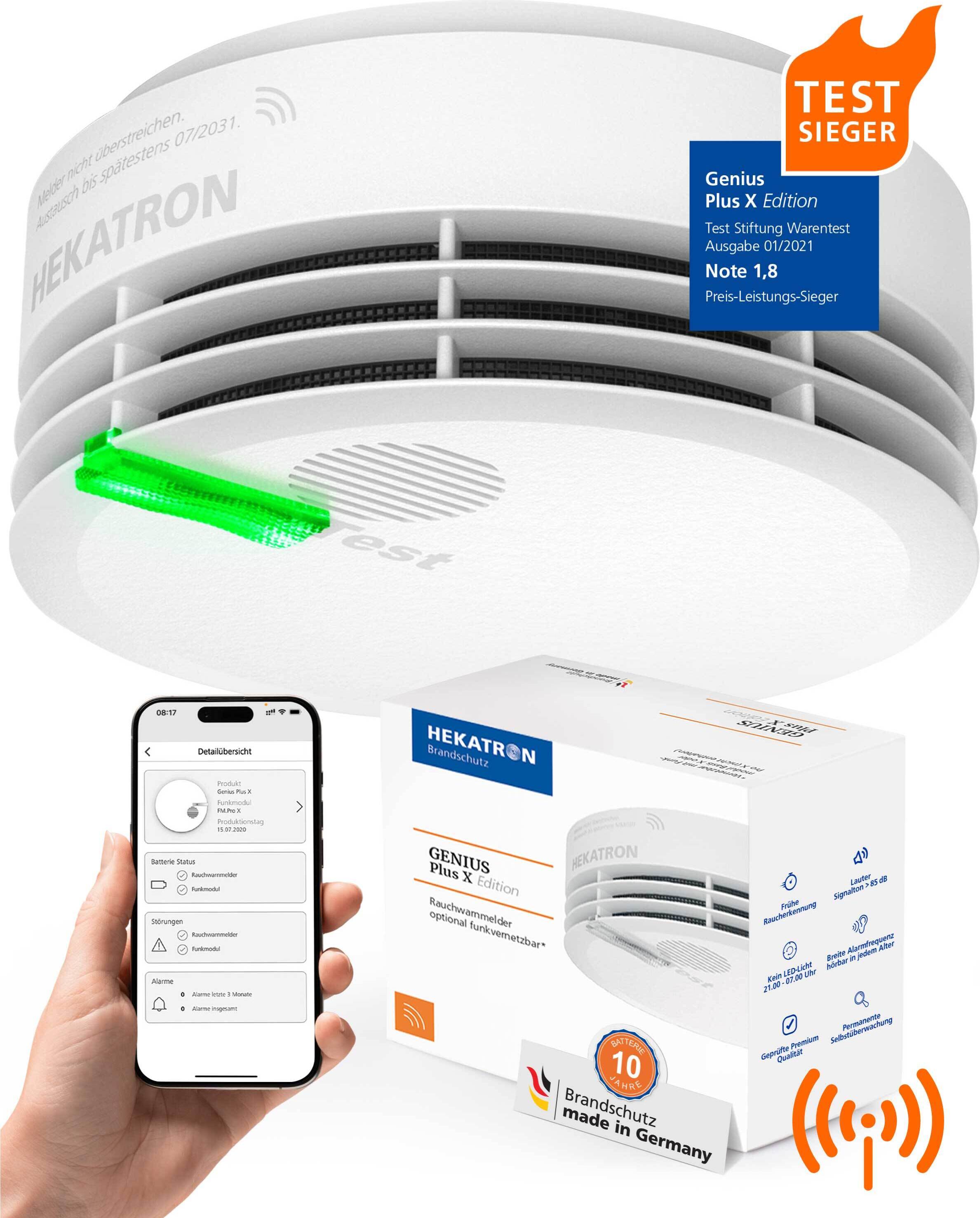 Auf Lager Versand durch AmazonHekatron Genius Plus X ? Rauchmelder 10 Jahre Batterie ? optional Funk vernetzbar ? Testsieger Stiftung Warentest ? Made in Germany ? Funkrauchmelder ? mehrsprachig ? 1 Stück