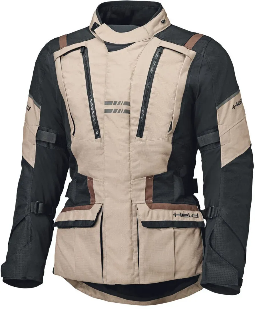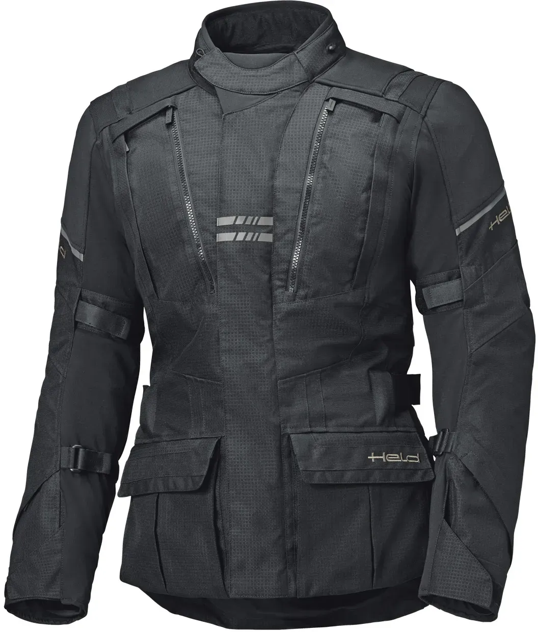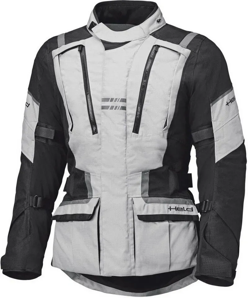 5 Händlerangebote bei billiger.de - Kategorie: Motorradjacken - Held - Eigenschaften Cordura RipStop 500D Atmungsaktives Mesh-Innenfutter Sympatex® Membrane, wasserdicht, winddicht und atmungsaktiv im herausnehmbaren Innenfutter Membrane als Regenschutz in oder über der Jacke tragbar 4 Außentaschen 3 Innentaschen Dokumententasche Handytasche innen Rückentasche SnapTech nachrüstbares Kapuzen- & Kragensystem Belüftungsöffnungen an Brust Benutzung der Reißverschlüsse auch als Air-Vent möglich Belüftungs-Reißverschlüsse in Front, Rücken und Armen Frontreißverschluss auch als ACS (Air-Vent) benutzbar eVest & eVest PRO ready Doppelte Armweitenverstellung Taillengürtel Softkragen Held Clip-in Technology Sicherheit Zertifiziert nach EN 17092, Schutzbekleidung für Motorradfahrer D3O® T5 EvoProX Soft-Protektoren an Schulter und Ellbogen, zertifiziert nach EN 1621-1:2012, Level 2 Rückenprotektor nachrüstbar, zertifiziert nach EN 1621-2:2014 Klett für nachrüstbaren Brustprotektor Level 2 oder Level 1, zertifiziert nach EN 1621-3:2018 Reflex-Einsätze Verbindungsreißverschluss Schutzklasse EN 17092:2020 Die over & under Technologie Flexibel tragbare Bekleidung für jede Wetterlage! Die herausnehmbare Membrane ist so gearbeitet, dass sie wahlweise über oder unter der Basiskombination getragen werden kann. Einfach die Membrane innen herauslösen und über die Jacke oder Hose ziehen. Highlights Membrane über oder unter der Basiskombi tragbar Basiskombi bleibt ... Diese wasserdichte Damen Motorrad Textiljacke ist airbag-vorbereitet und bietet sowohl Ellenbogen- als auch Schulterprotektoren für umfassenden Schutz. ![]() ![]() Held Biker Fashion Motorradjacke Hakuna Matata 3 wasserdichte Damen Motorrad Textiljacke Airbag vorbereitet,Ellenbogenprotektoren enthalten,Schulterprotek grau|schwarz L