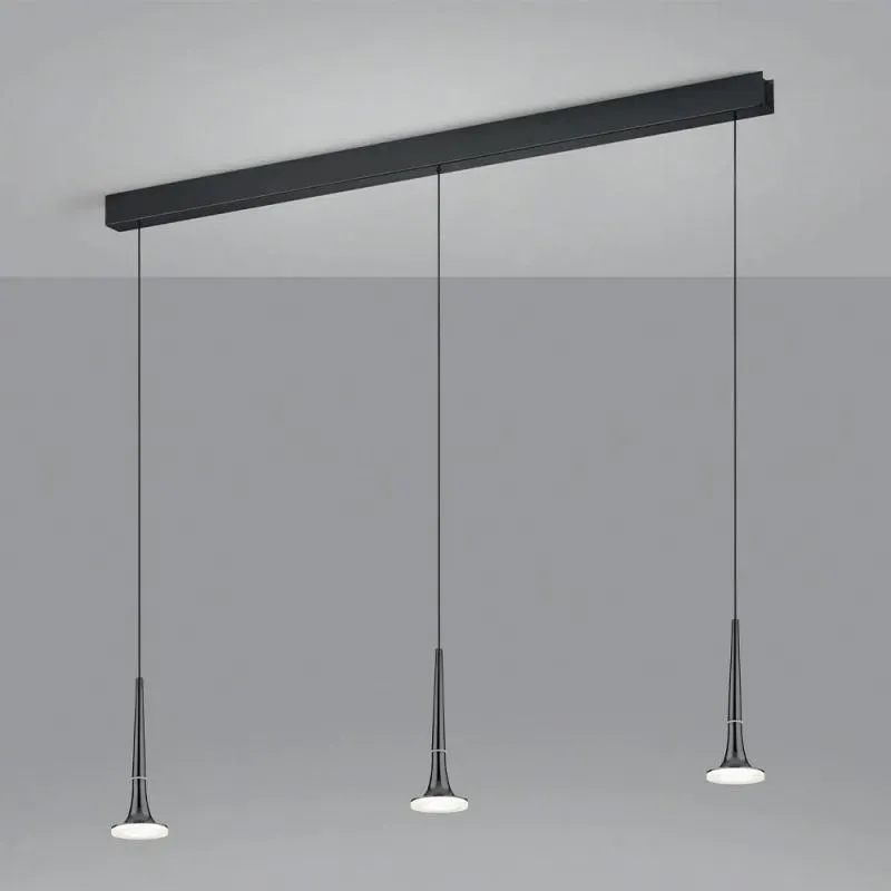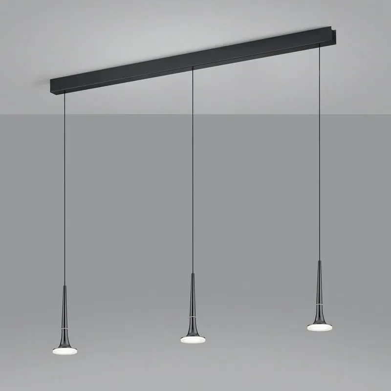 Sofort lieferbar | in 1-3 Werktagen3-flammige Helestra FLUTE LED Pendelleuchte in schwarzchrom mit blendfreier Satinierung aus Acrylglas