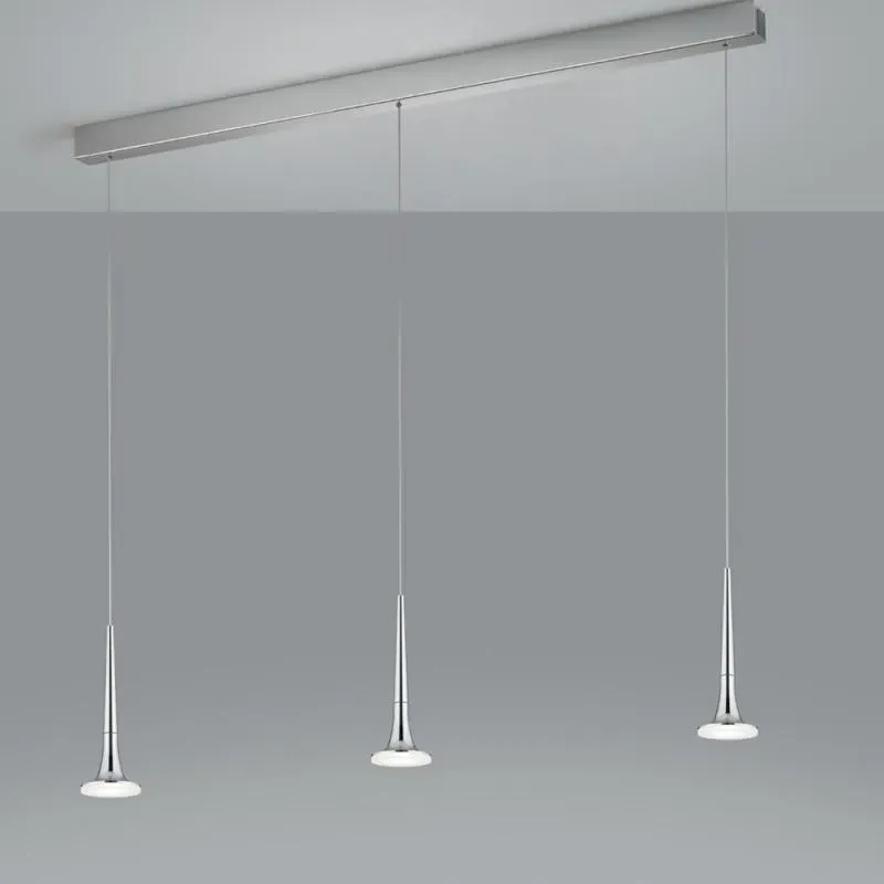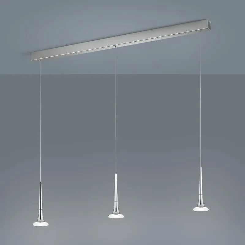 Sofort lieferbar | in 1-3 Werktagen3-flammige Helestra FLUTE LED Pendelleuchte in Chrom mit blendfreier Satinierung aus Acrylglas