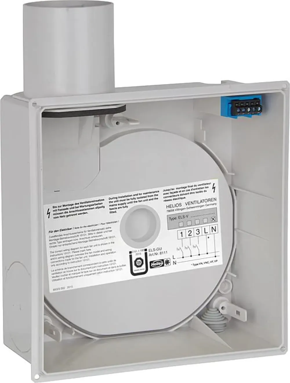 14 Händlerangebote bei billiger.de - Kategorie: Lüftungstechnik - Helios - Zweitraum-Set ELS-ZS, bestehend aus Absaugeinheit für zweiten Raum und Zweitraumstutzen. - GTIN:4010184081869 Dieses Unterputzgehäuse ist eine günstige Option für Installationen ohne Brandschutzanforderungen. ![]() ![]() Helios Gehäuse ELS-GU 8111 ohne Brandschutz, Unterputz