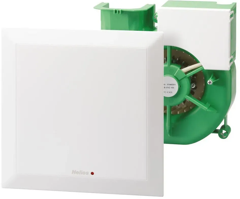 14 Händlerangebote bei billiger.de - Kategorie: Lüftungstechnik - Helios - Helios Ventilator ELS-VN 100 8138mit eingebautem Nachlaufschaltermaximaler Volumenstrom 100qm3/hweiss,Artikelnummer: 8138 ELS-VN 100 Ventilatoreinsatz mit Fassade und Nachlauffunktion V = 100 cbm/h. Ventilator-Einsatz mit 100 m3/h Volumenstrom mit integriertem Nachlauf, Nachlaufzeit auf ca. 6, 15, 21 Min. einstellbarAnlaufverzögerung ca. 45 Sek. (fest eingestellt). Betriebsbereite Lieferung mit flacher Innenfassade (alpinweiß) und ultraSilence Technologie. Serienmäßig mit Dauerfilter und Filterreinigungsanzeige. Integrierte Steckverbindung, für elektrischen Anschluss. Schutzisoliert, Klasse II, IP 55. Für Installation im Bereich 1 von Nassräumen. Wartungsfreier, kugelgelagerter Energiesparmotor 230 V~, 50 Hz, 34 W. Schallleistung 51 dB (A), Schalldruck 47 dB(A).* * bei AL = 10 m2 äquivalenter Absorptionsfläche in Kombination mit Gehäusetype ELS-GU, Ausblas seitlich. Angabe nach DIN 18017, T.3, Ausgabe 1990, Ziff. 6.2.4. Fußnote 3. Gleichzeitige Lüftung von Bad und WC (Nachlauf durch DIN vorgeschrieben). Lüftung von Wohnungsküchen. Nachlaufzeit: 15. Volumenstrom ca. m³/h: 100, Leistungsaufnahme ca. Watt: 34 Schalldruckpegel 1) ca. dB(A) bei 10 m² äquivalenter Absorptionsfläche: 47, Schallleistungspegel 1) LWA ca. dB(A): 51,Elektrischer Anschluss: 230 V~, 50Hz: NYM-0 Elektrische Zuleitung in mm²: 3 x 1,5, Schutzklasse II ohne PE, Anschluss nach Schaltplan-Nr.: SS-876 Alle ... Mit einem Volumenstrom von 100 m³/h ist dieser Ventilator-Einsatz ideal für größere Räume wie Bad, WC und Küche. Obadis.com Helios Ventilator-Einsatz ELS-V 100 8132 100 m3/h, für Bad, WC und Küche
