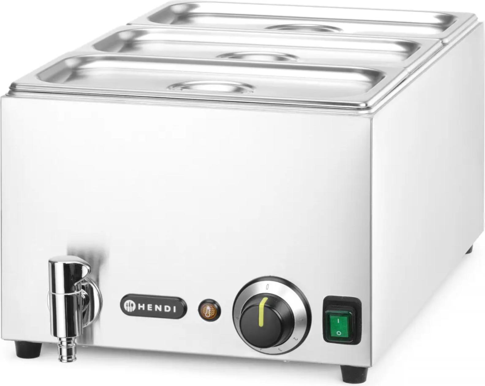 Kategorie: Sonstige Gastronomieartikel - HENDI - GTIN:8711369802632 - Aus hochwertigem Edelstahl 18/10. Robustes Design. Abgerundete Kanten und Ecken, einfach zu reinigen. Für den Einsatz in kompatiblen Heißluftöfen, Kühl- und Tiefkühlschränken, Bain Marie-Systemen und Chafing Dishes. Mit Silikonrand für luftdichten Verschluss. Passend für Gastronormbehälter der Serie Profi Line sowie Behälter aus Polykarbonat. Dank des dichtschließenden Deckels bleiben die Lebensmittel länger frisch. Kein Verschütten während des Transports. - 27,49 Euro bei haushaltsparadies.de - gefunden von billiger.de Dieses Bain-Marie-Set ist eine umfassende Lösung für die Warmhaltung von Speisen und beinhaltet bereits drei GN 1/3 Behälter mit Deckel. ![]() ![]() HENDI Bain-Marie komplett mit 3xGN1/3 Behälter mit Deckel, und 1000W aus Edelstahl