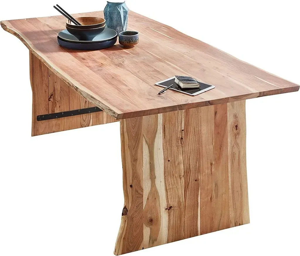 1 Händlerangebote bei billiger.de - Kategorie: Esstische - sam möbel gmbh - Trendiger Esszimmertisch Henry, 200 x 100 cm, Akazienholz massiv & lackiert, naturfarben, mit Holzwange-Gestell Der trendige Baumkantentisch überzeugt durch eine perfekt gelungene Kombination aus Natürlichkeit und stylischer Moderne. Holen Sie sich dieses Unikat mit individuellem Charakter für Ihr Esszimmer. Ausgezeichnete Verarbeitung Die gesamte Verarbeitung dieses charismatischen und edlen Naturholzes ist sehr schonend sowie naturgerecht, wodurch die Möbel atmungsaktiv bleiben und eine gesunde Wohlfühl-Atmosphäre schaffen. Hochwertiges Unikat Der Esstisch besteht aus massivem und robustem Akazienholz. Aufgrund der einzigartigen Maserung erhalten Sie ein Unikat mit individuellem Charakter. Kombinierbar Der edle Baumtisch lässt sich problemlos mit verschiedenen Möbelstücken und Einrichtungsstilen kombinieren. Massivholzmöbel aus Akazienholz gehören mit ihrer abwechslungsreichen und eleganten Maserung zu den zeitlos schönen Möbeln, die niemals aus der Mode kommen. Natur Pur Besonderes Highlight des Esszimmertisches sind die Tischkanten und die Kanten des Gestells, die den natürlichen Formen eines Baumes entsprechen und direkt aus dem Baumstamm geschnitten wurden. Maßangaben Gesamtlänge: ca. 200 cm Gesamtbreite: ca. 100 cm Gesamthöhe: ca. 77 cm Tischplatte: ca. 26 mm Wichtiges zur Auslieferung Artikel wird zerlegt geliefert, mit ausführlicher Aufbauanleitung und Montagematerial. Die Lieferung erfolgt ... Das Fun Moebel Boxspringbett "Henry" in 120x200cm bietet hohen Schlafkomfort und ein modernes Design. Manomano.d e