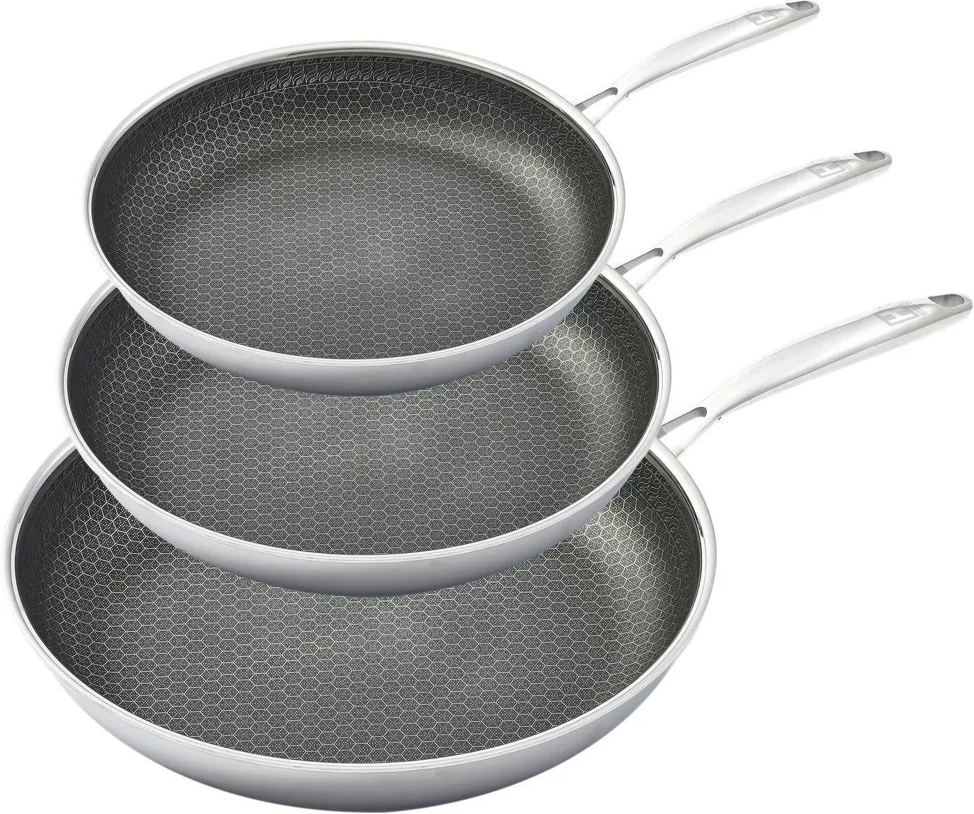 lieferbar-in 1-2 Werktagen bei dirHENSSLERS Pfannen-Set, Edelstahl (Set, 2-tlg., 1x Bratpfanne 24 cm, 1x Bratpfanne 28 cm), 3-Schicht Material, Wabenstruktur und Antihaftbeschichtung, Induktion silberfarben