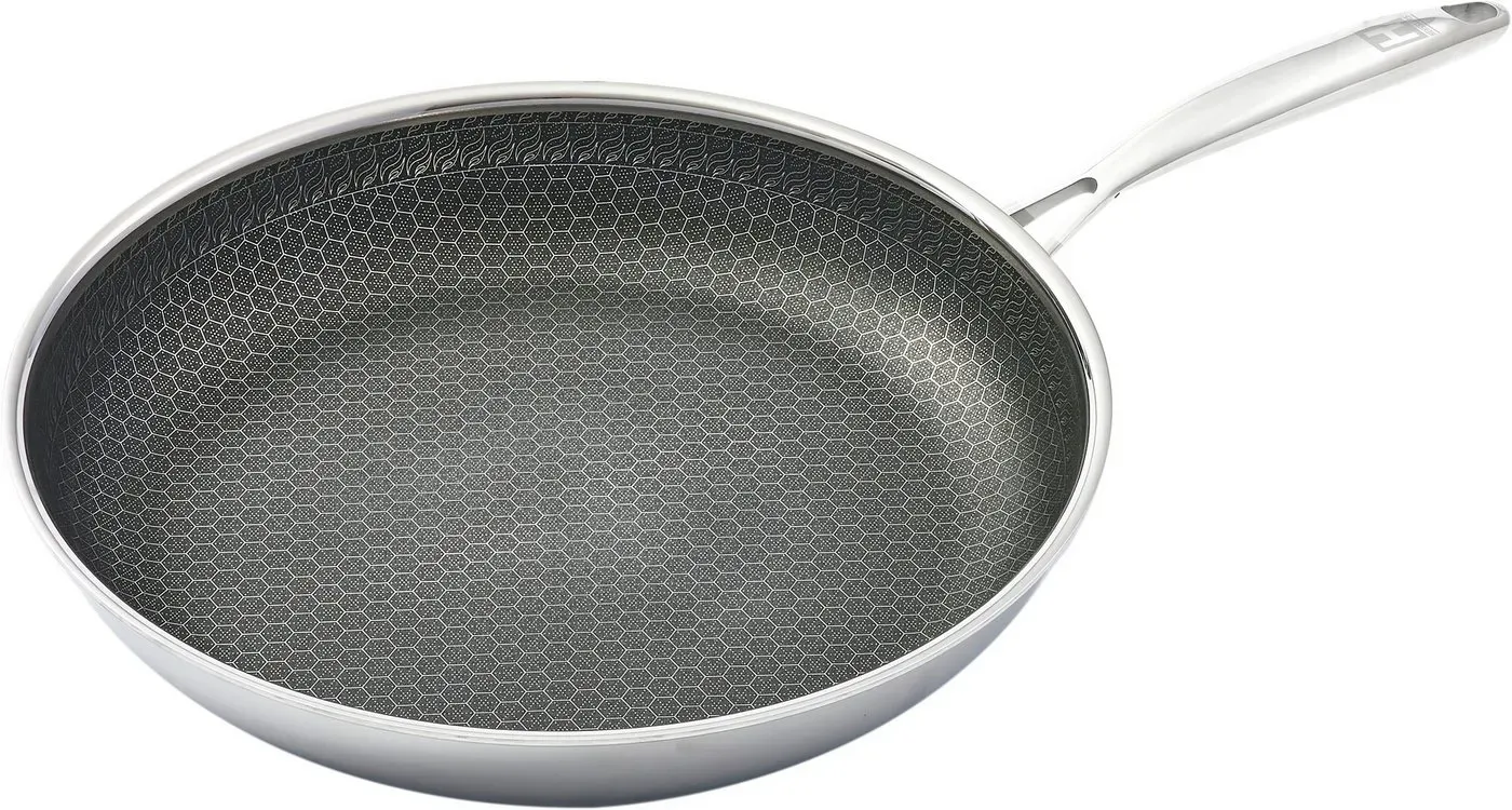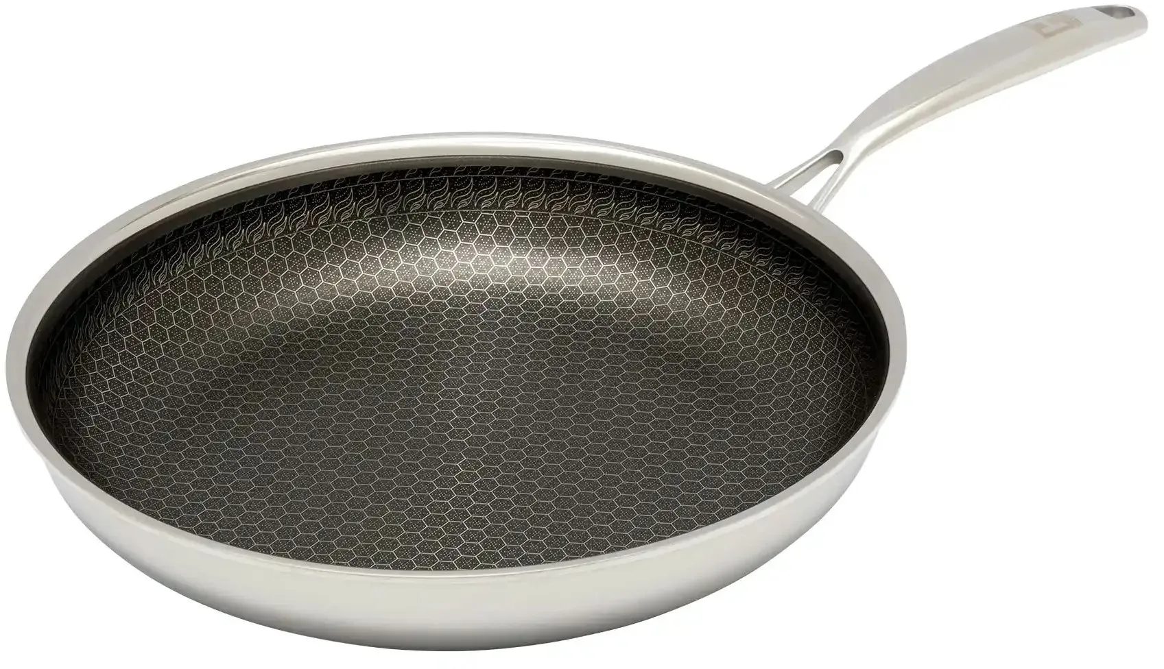lieferbar-in 1-2 Werktagen bei dirHENSSLERS Bratpfanne, Edelstahl (1-tlg), 3-Schicht Material, Wabenstruktur und Antihaftbeschichtung, Induktion silberfarben 28 cm x 29 cm x 50 cm x 4 cm