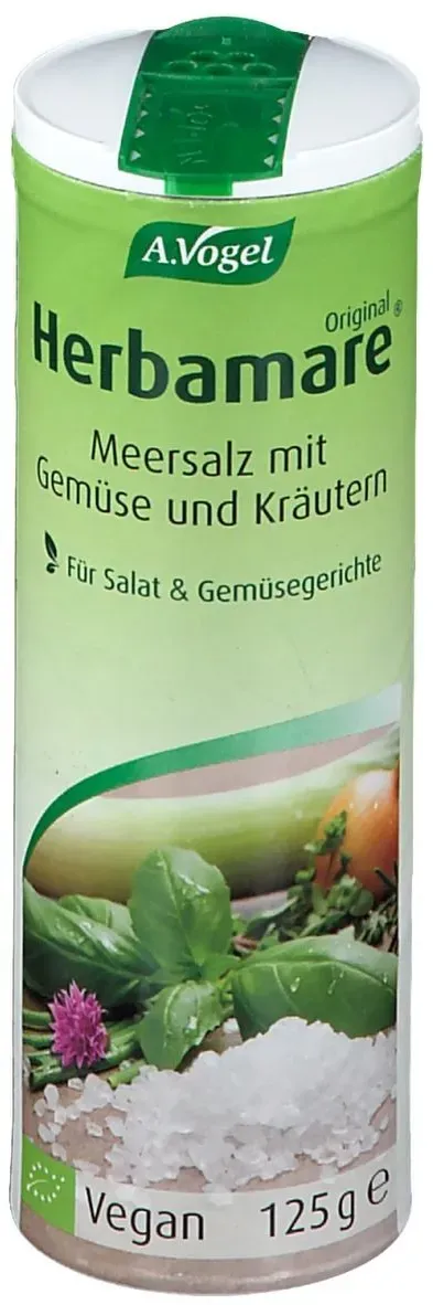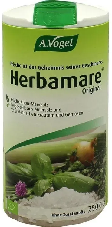 Zustand: Neu - 23,92 € / kg - Bio, Vegan, Fairtrade, Lactosefrei, Glutenfrei & mehr - A.Vogel Herbamare - 118947 - EAN: 7610313412099 - Meersalz mit Gemüse und Kräutern Zum Kochen, Braten, Rohverzehr - 3 Händler im amazon.de Marketplace Für 3.11 Euro erhalten Sie hier eine 250g Packung Herbamare, ein gutes Preis-Leistungs-Verhältnis für eine größere Menge. ![]() ![]() Kyberg Pharma Vertriebs GmbH A.vogel Herbamare 250 G