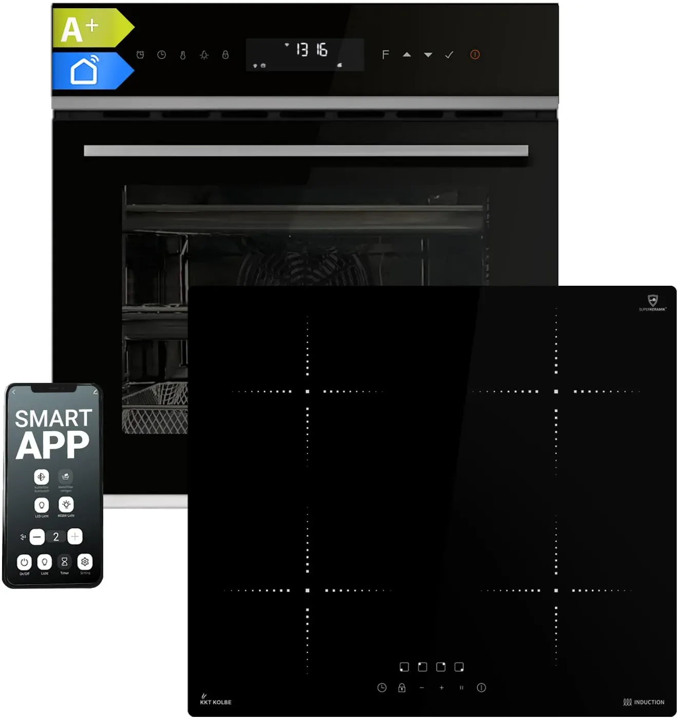 Küche Arbeitsplatten & Küchenrückwände Küchenausstattung Kücheneinrichtung & Zubehör Öfen - EAN:4260641228218 - Ausstattungsmerkmale 9 Beheizungsarten: Auftauen, Ober-/Unterhitze, Halb Grill, Konventioneller Grill, Umluftgrill, Unterhitze + Ventilationen, Pizzafunktion, Heißluft, Intensivbacken (Ober- / Unterhitze + Ventilation) Backofeninnentür: Dreifachverglasung Material / Farbe: Edelstahl / Glas / Black Steel Volumen des Garraums: 66 Liter Griff: Black Steel Steuerung: Touch Bedienung Besonderheiten: vollprogrammierbarer LED Timer, 2 Teleskopauszüge im Backraum Zubehör: Grillrost, Emailliertes Backblech Gerätemaße Backofen (H x B x T) / Gewicht: 59 x 59,5 x 54,2 cm / 29 kg Nischenmaße Backofen (H x B x T): 66 x 66 x 61 cm / 32,5 kg Backofen wird steckerfertig geliefert Respekta Backofen Technische Daten Backofen Energieeffizienzklasse A Anschlusswert / Betriebsspannung: 3350 W / 220-240 V - 50 Hz Energieverbrauch / pro Zyklus: Konventionell 0,76 kWh Energieeffizienzindex pro Garraum (EEI): 94,3 Geräuschemission: 51 dB/A Technische Daten Induktionskochfeld Leistung (W) / Durchmesser (mm) der - gefunden von Kelkoo Das KKT KOLBE Autarkes Herdset für 669.99 Euro bietet einen Einbaubackofen mit Pizzafunktion und ein Induktionskochfeld. ![]() ![]() KKT KOLBE Küchentechnik Autarkes Herdset: 60cm Einbaubackofen EB8319PHC + 59cm Induktionskochfeld IH85900RL | Pizzafunktion | Grill | Umluft | Heißluft |Timer | SET8319PHCIH859RL