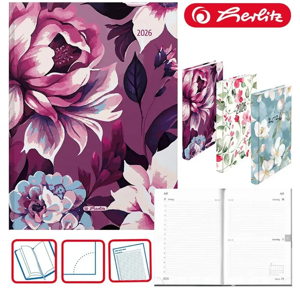 Kategorie: Organizer - Herlitz - GTIN:4008110431277 - Material , Papier, - 9,99 Euro bei OTTO - gefunden von billiger.de Der Rainbow-Kalender mit Blumenmotiv in Dunkelrot ist eine farbenfrohe und ansprechende Option. ![]() ![]() Herlitz Buchkalender A5 Rainbow 2026, Jahr / Motiv:2026 / Blumen dunkelrot - Bunt/Dunkelrot