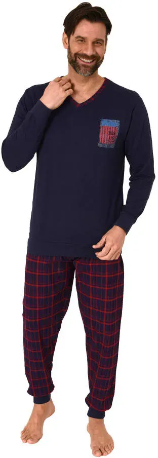 Zustand: Neu - Schlafanzüge Schlafanzüge für Herren - Moonline - 80-180-6 B009YQAOI4 - EAN: 4250736408854 - Durch den Baumwolljersey besitzt der lange Pyjama ein sehr angenehmes Tragegefühl Lieferumfang: 1 x Langarm Herren Schlafanzug mit V-Ausschnitt, langer Hose, aus 100% Baumwolle - in bester Qualität von Moonline Optimale Passform aufgrund des bequemen Schnitts, atmungsaktiv, Größe: 46/48 bis 5XL Ideal als Pyjama zum Schlafen oder als gemütliche Homewear für Zuhause Pflegehinweise: 40°C waschen, nicht bleichen, nicht im Tumbler trocknen, mäßig heiß bügeln, nicht chemisch reinigen - Verkäufer: fashion2need im amazon.de Marketplace Dieser NORMANN Flanell-Pyjama mit karierter Hose ist für 27,99 Euro eine warme und bequeme Wahl. ![]() ![]() NORMANN langarm Schlafanzug Pyjama karierte Flanell Hose - 70839 in navy | Gr.: 50