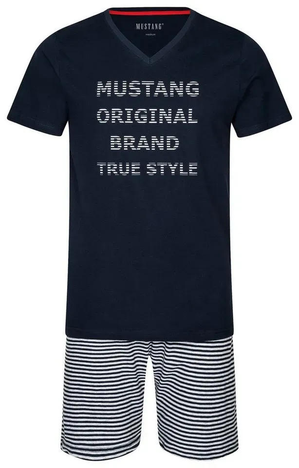 lieferbar-in 4-5 Werktagen bei dirMUSTANG Schlafanzug OLE Short-Set T-Shirt Short kurze Hose Pyjama Schlafkombi (2 tlg) Oberteil navy, Short navy/graumelange geringelt XL (56/58)