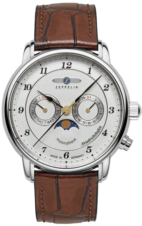 Herrenarmbanduhr Taucheruhr Gesamtsortiment Mode Alles in Mode Uhren + Schmuck Armbanduhr - EAN:4045425017802 - Gigandet, Armbanduhr, Automatisches Herrenarmbanduhr mit Datumsfunktion und Leuchtzeigern, Schwarz, (Taucheruhr, 43 mm) - gefunden von Kelkoo Die Zeppelin Herrenarmbanduhr "Friedrichshafen Mondphase" bietet ein edles Design mit Mondphasenanzeige und Lederband. ![]() ![]() Zeppelin Herrenarmbanduhr Friedrichshafen Mondphase Braun | Gr.: onesize