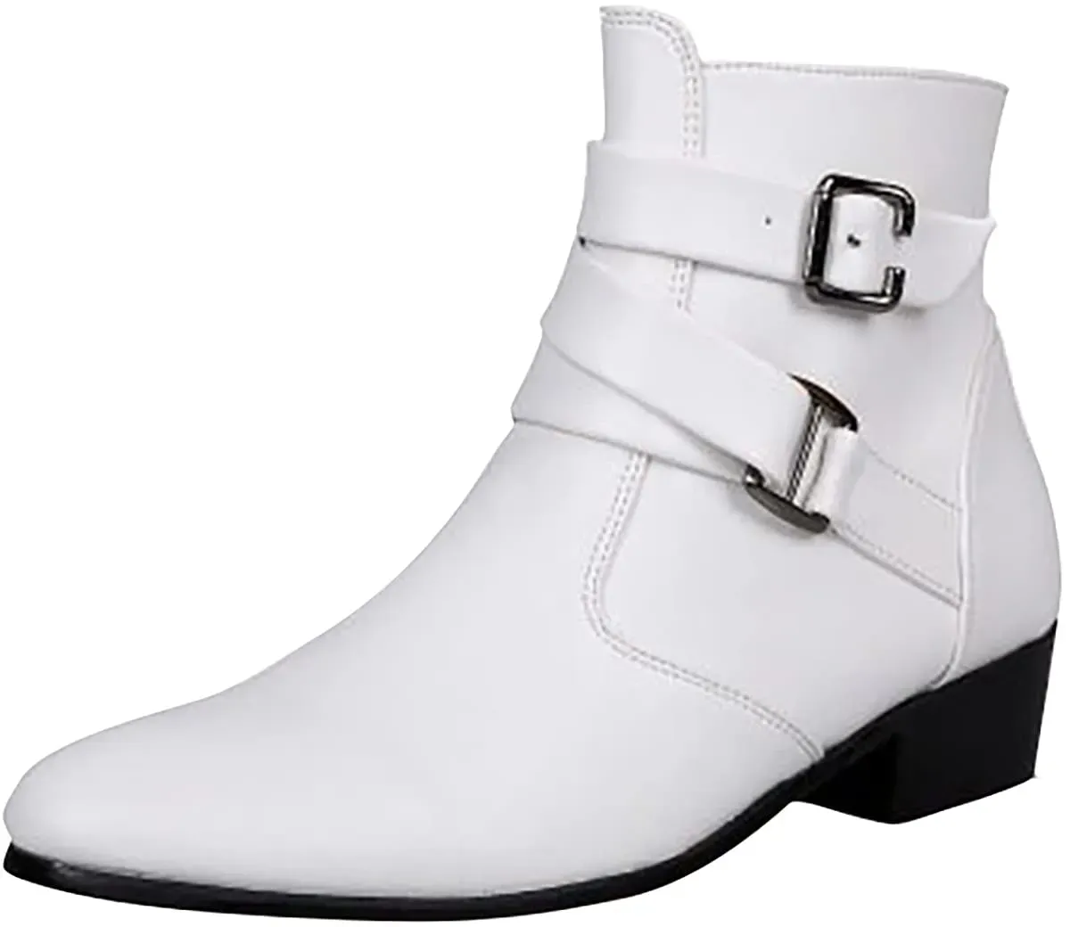 Gewöhnlich versandfertig in 2 bis 3 TagenBRISEZZS BRISEZZ Herren Kurze Stiefel Runde Zehe Einfarbig Dicker Absatz Niedrige Stiefel Schnalle Seitlicher Ankle Booties mit Reißverschluss Männer Warmer Schneestiefel Flache Stiefeletten(Weiß,45) - 45 EU