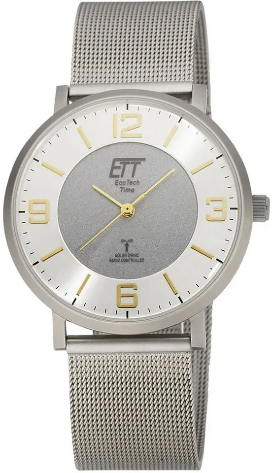 10 Händlerangebote bei billiger.de - Kategorie: Herrenuhren - ETT - Moderne, flache Damenuhr mit Solar Funk Antrieb Edelstahlgehäuse und -armband in modernen Farbkombination, Zifferblatt grau mit goldenen Akzenten Mineralglas, 60 bis 90 Tage Dunkelgangreserve Aus Licht wird Zeit. Laden Sie den Akku Ihrer Uhr mit Sonnenlicht auf. Solar Dive Initiative - für jeden Uhr wird ein Baum im Regenwald gepflanzt - GTIN:4260503036289 Diese Funkuhr von ETT bietet ein hervorragendes Preis-Leistungs-Verhältnis mit Solarfunktion und Titan-Gehäuse. ![]() Funkuhr ETT 'Basic Titan', titanfarben, goldfarben, Armbanduhren, Herren, Armbanduhr, Herrenuhr, Datum, Solar, Titan